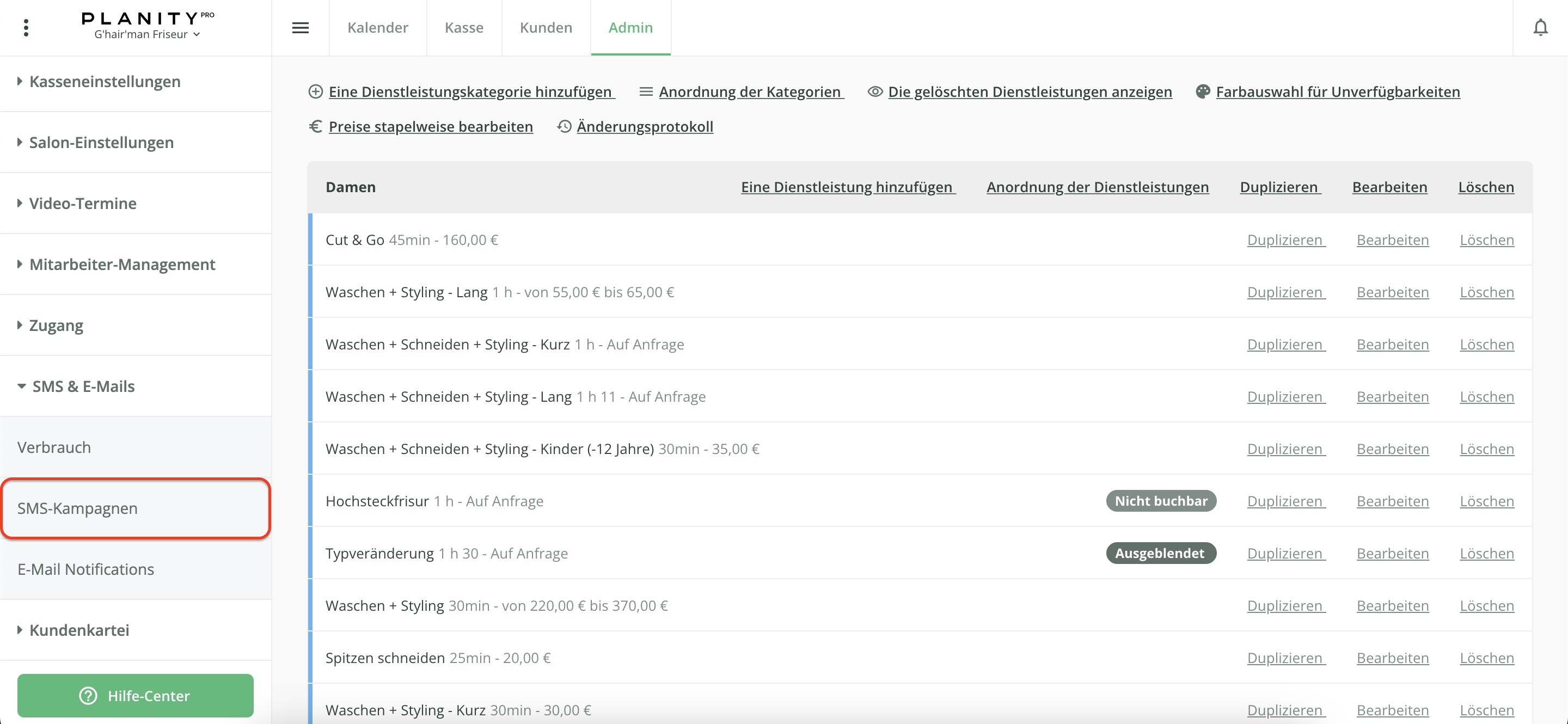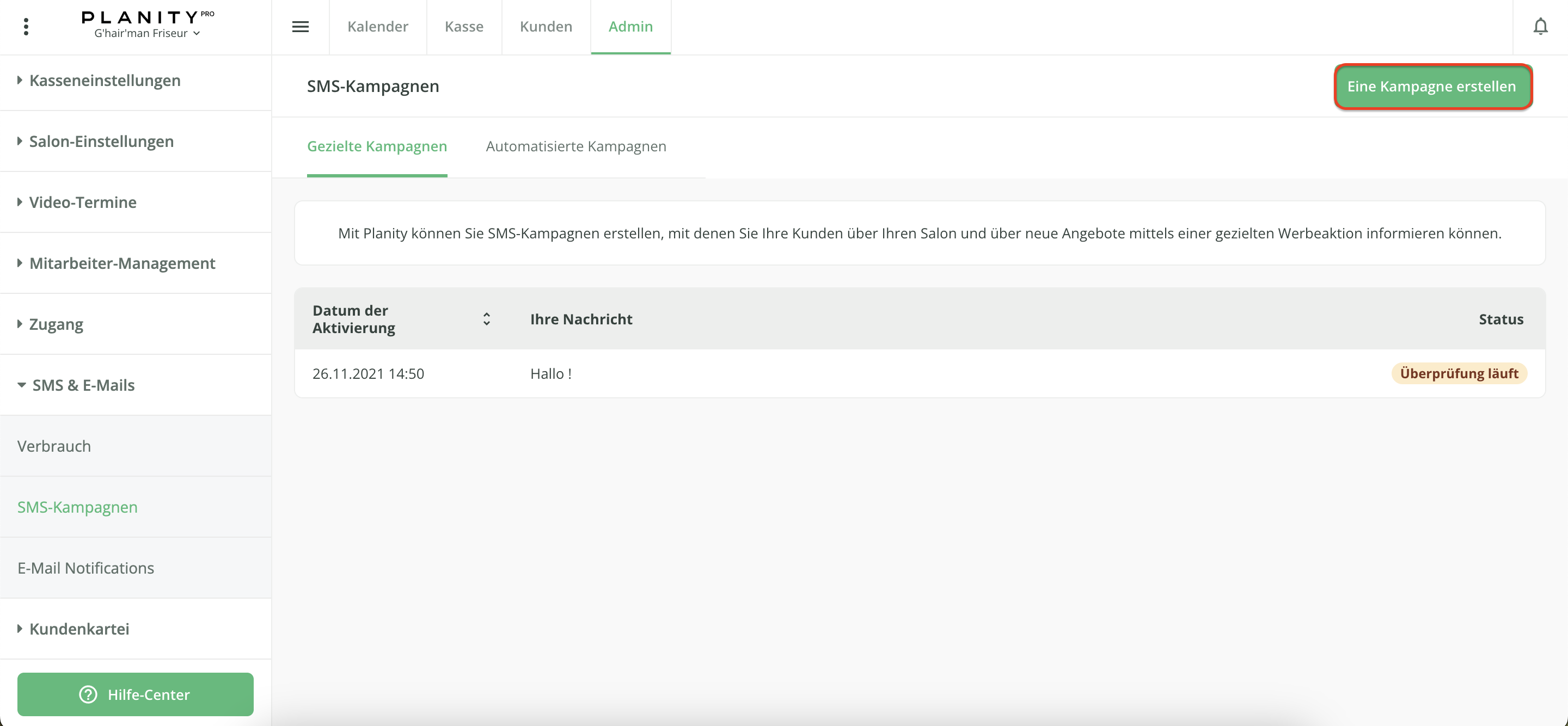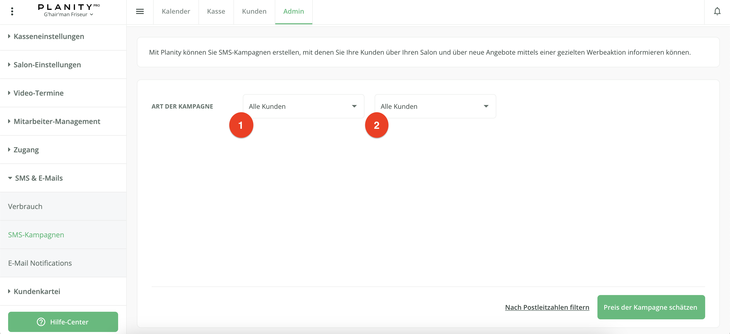 - Klicken Sie auf das Untermenü SMS-Kampagnen.