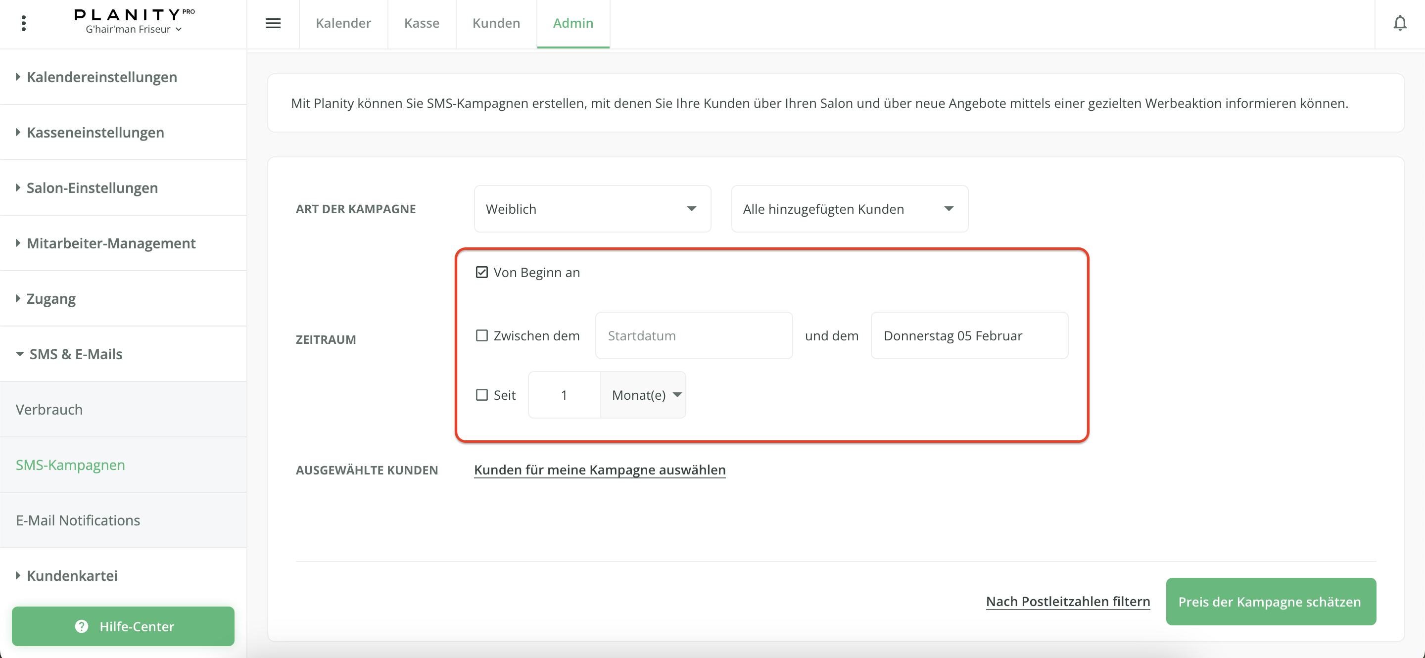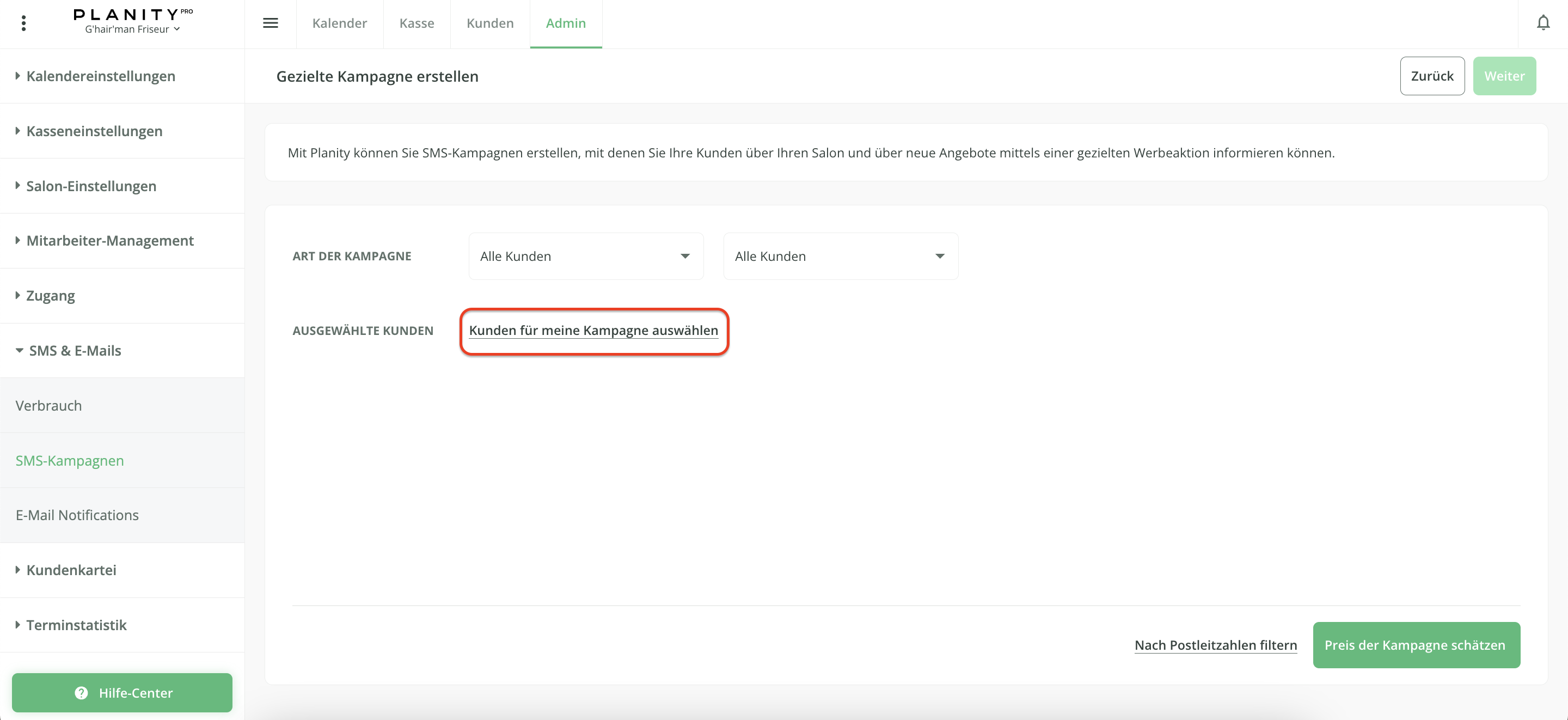 Wenn Sie möchten, können Sie auch gezielt Kunden auswählen, die Ihre SMS-Kampagne erhalten sollen.