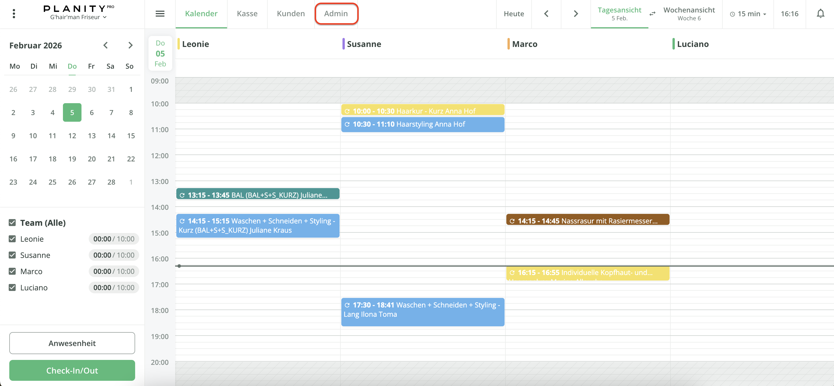 Klicken Sie oben im horizontalen Hauptmenü auf die Registerkarte Admin.