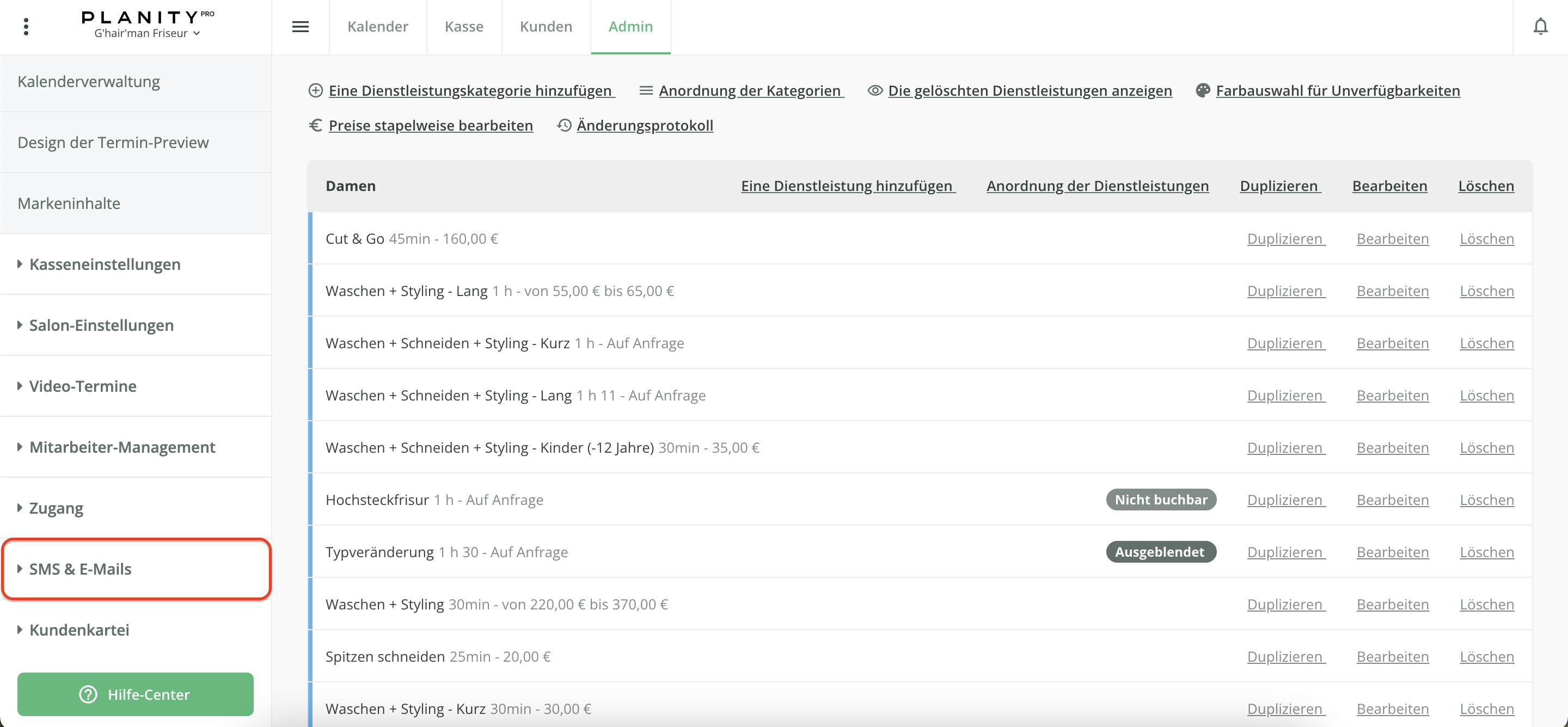 - Klicken Sie auf das Menü SMS & E-Mails.