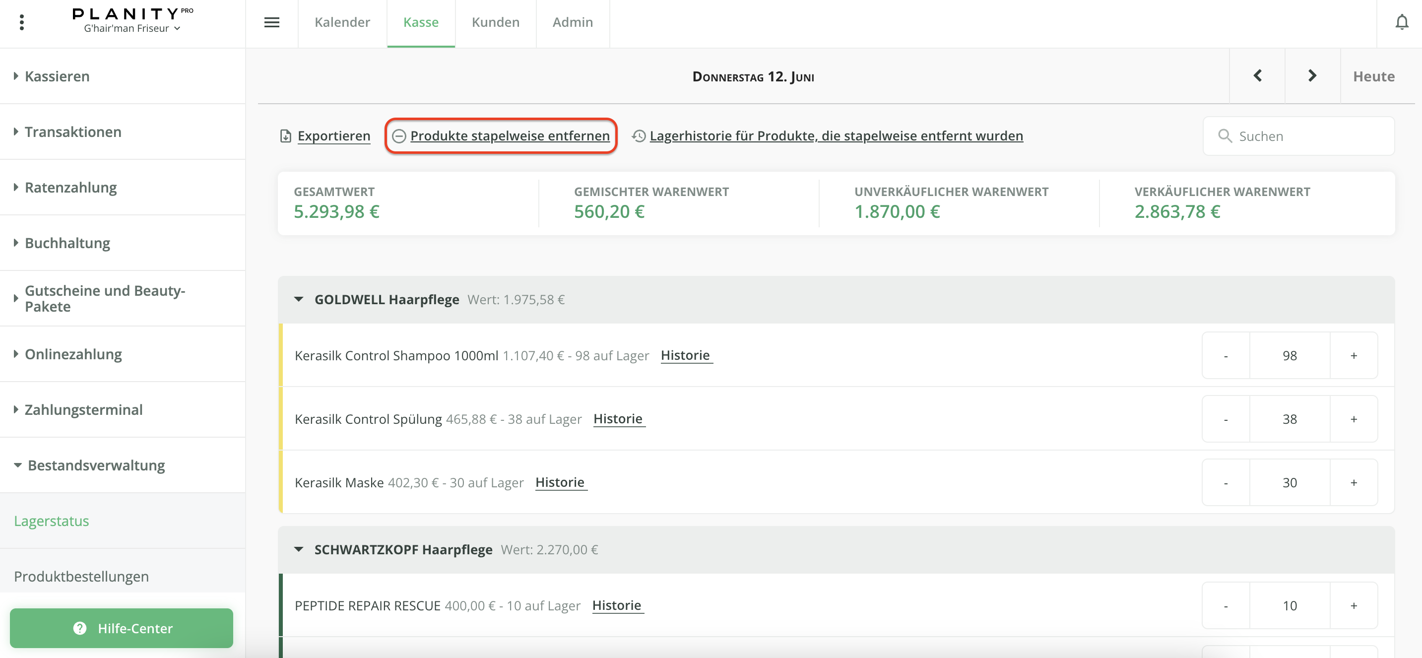 - Um auf Ihren Produktbestand zuzugreifen, klicken Sie zunächst auf die Registerkarte Kasse.