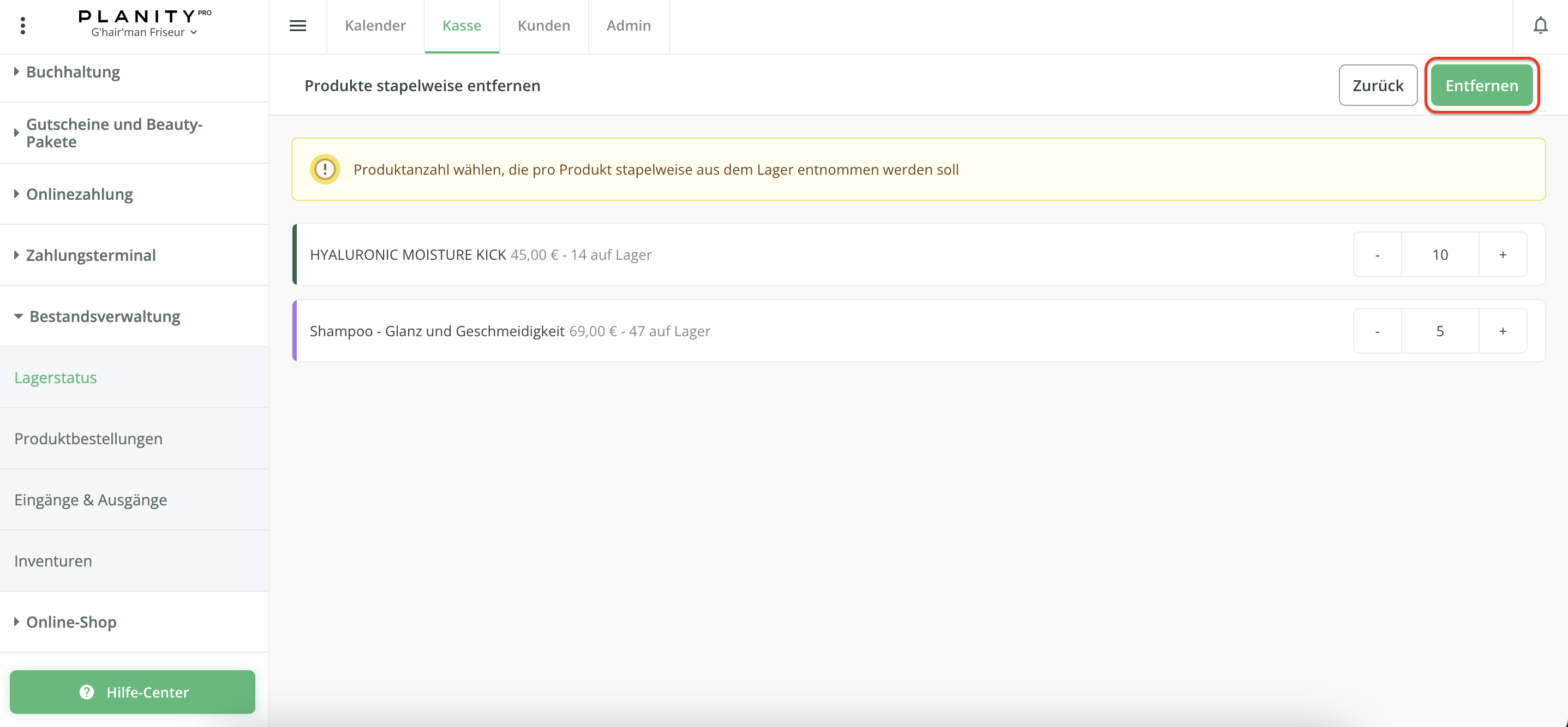 - Sobald Sie die Liste der zu entfernenden Produkte erstellt haben, klicken Sie auf Entfernen.