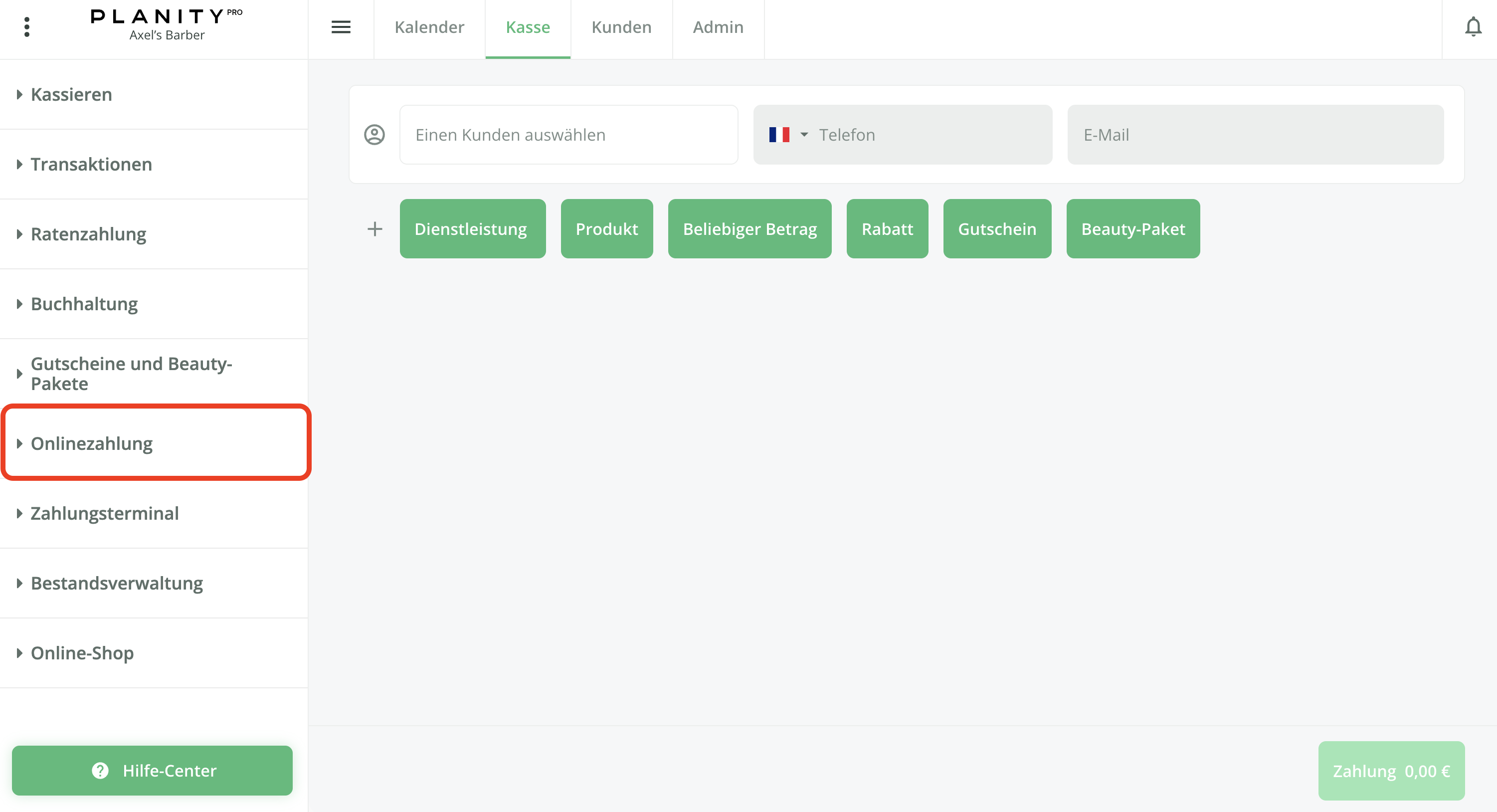 - Klicken Sie auf die Registerkarte Kasse oder auf die Registerkarte Admin, wenn Sie keine Kasse haben.