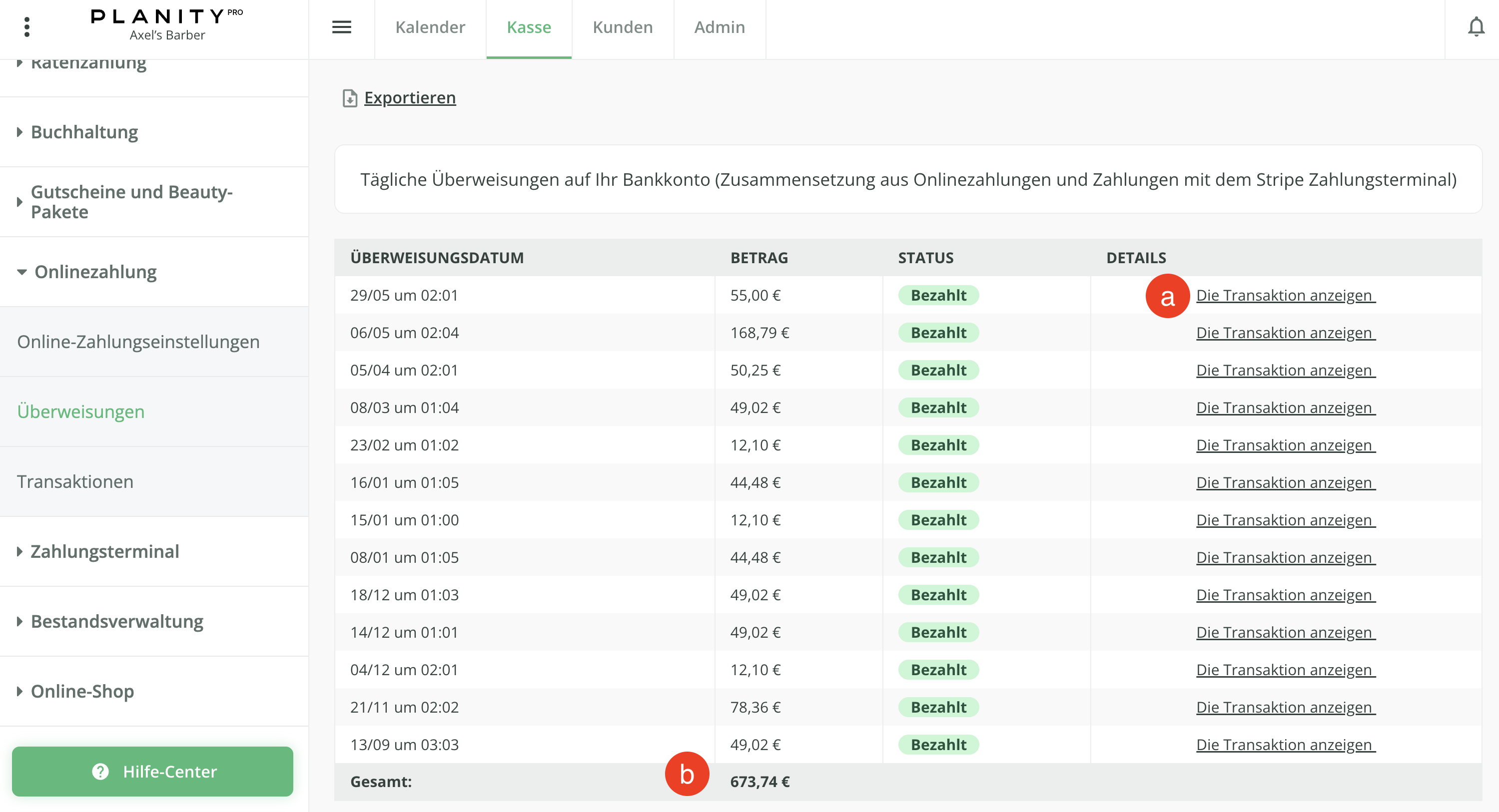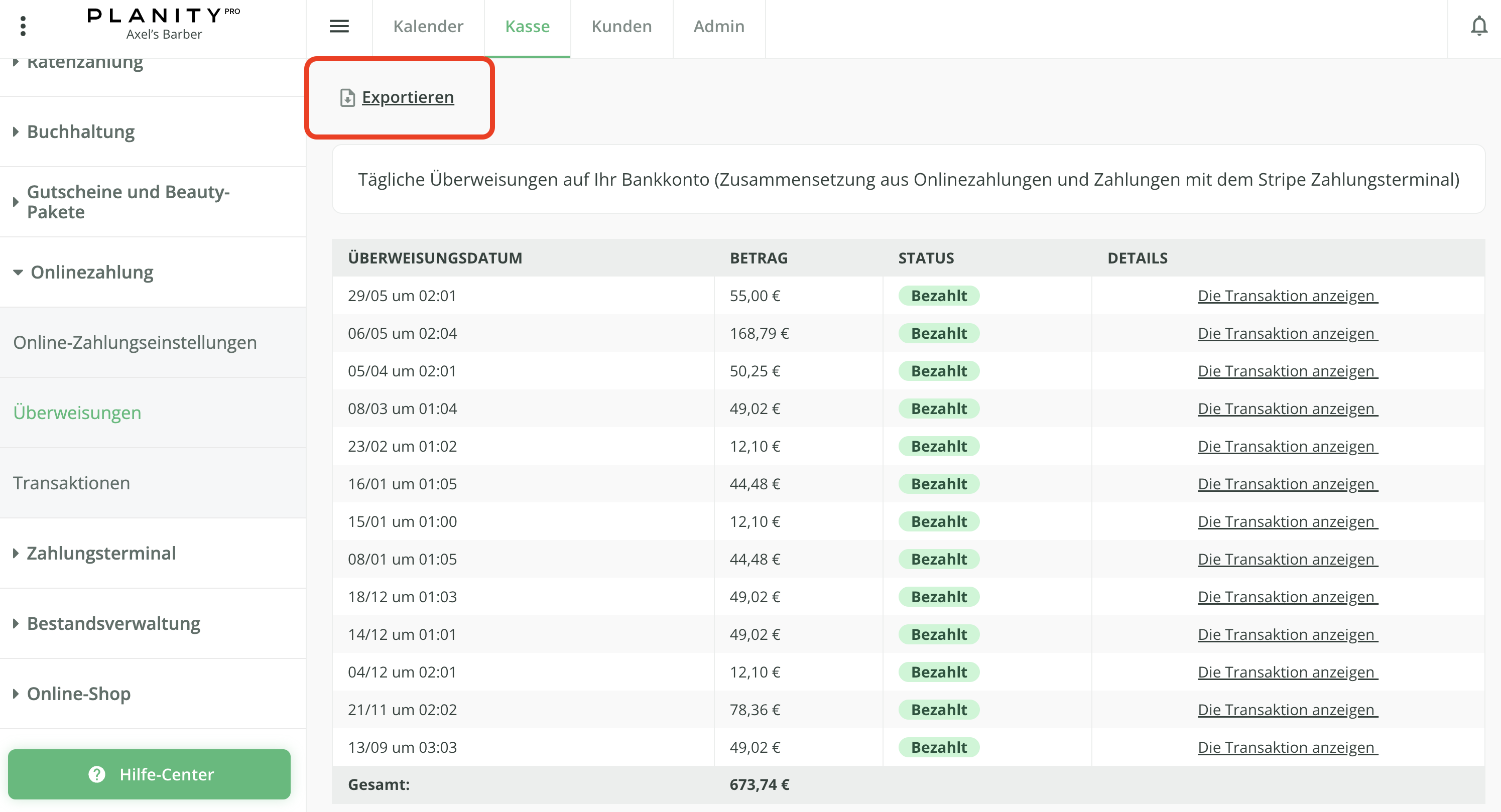 - Es ist möglich, die Überweisungen im CSV-Format zu exportieren.