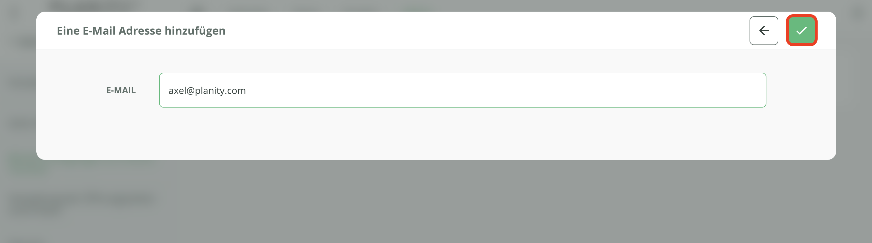 - Klicken Sie anschließend auf Eine E-Mail Adresse hinzufügen, und fügen Sie diejenigen E-Mail Adressen hinzu bzw. wählen Sie bereits eingetragene E-Mail Adressen aus, an die die Benachrichtigung versendet werden soll.