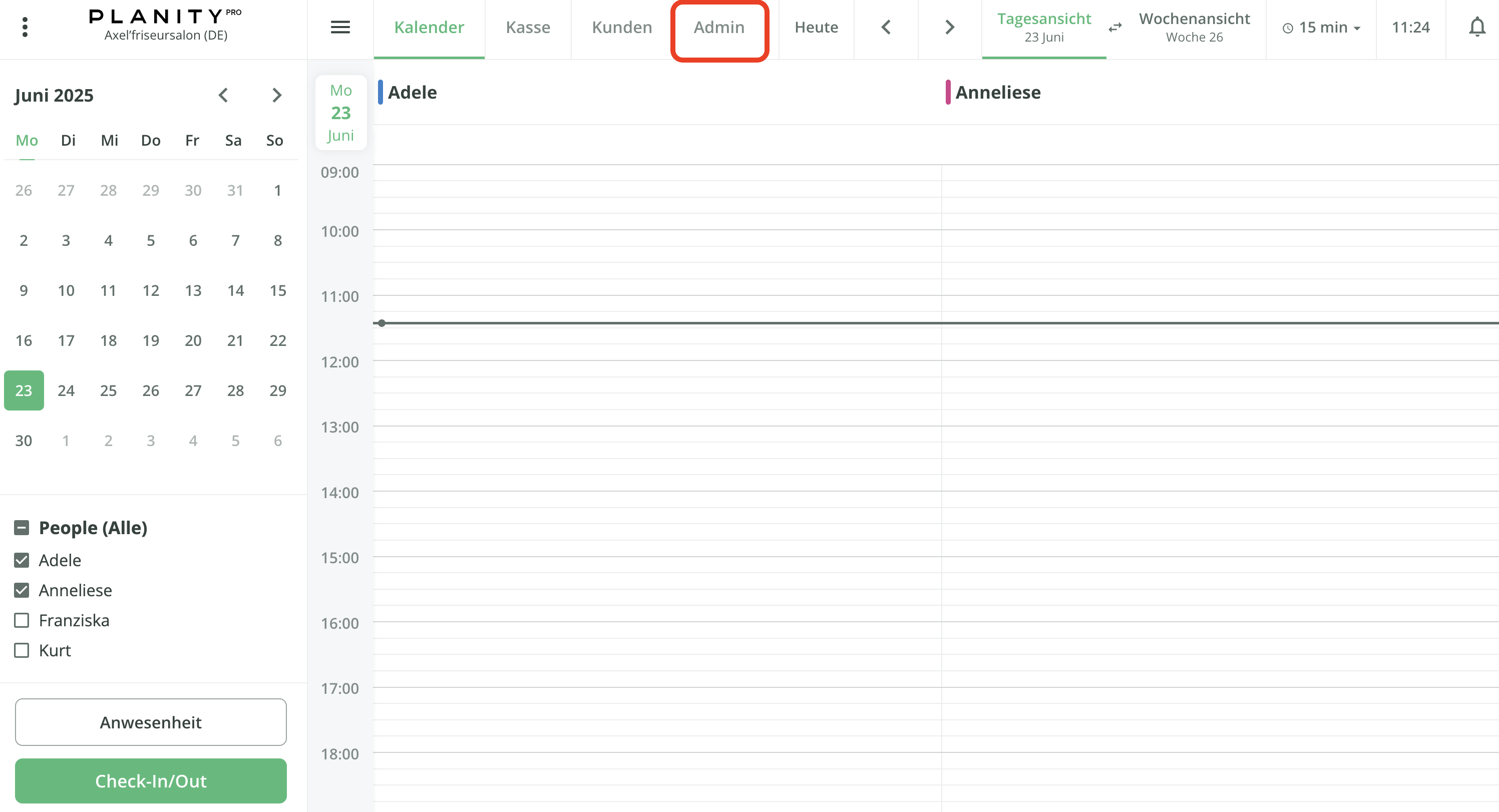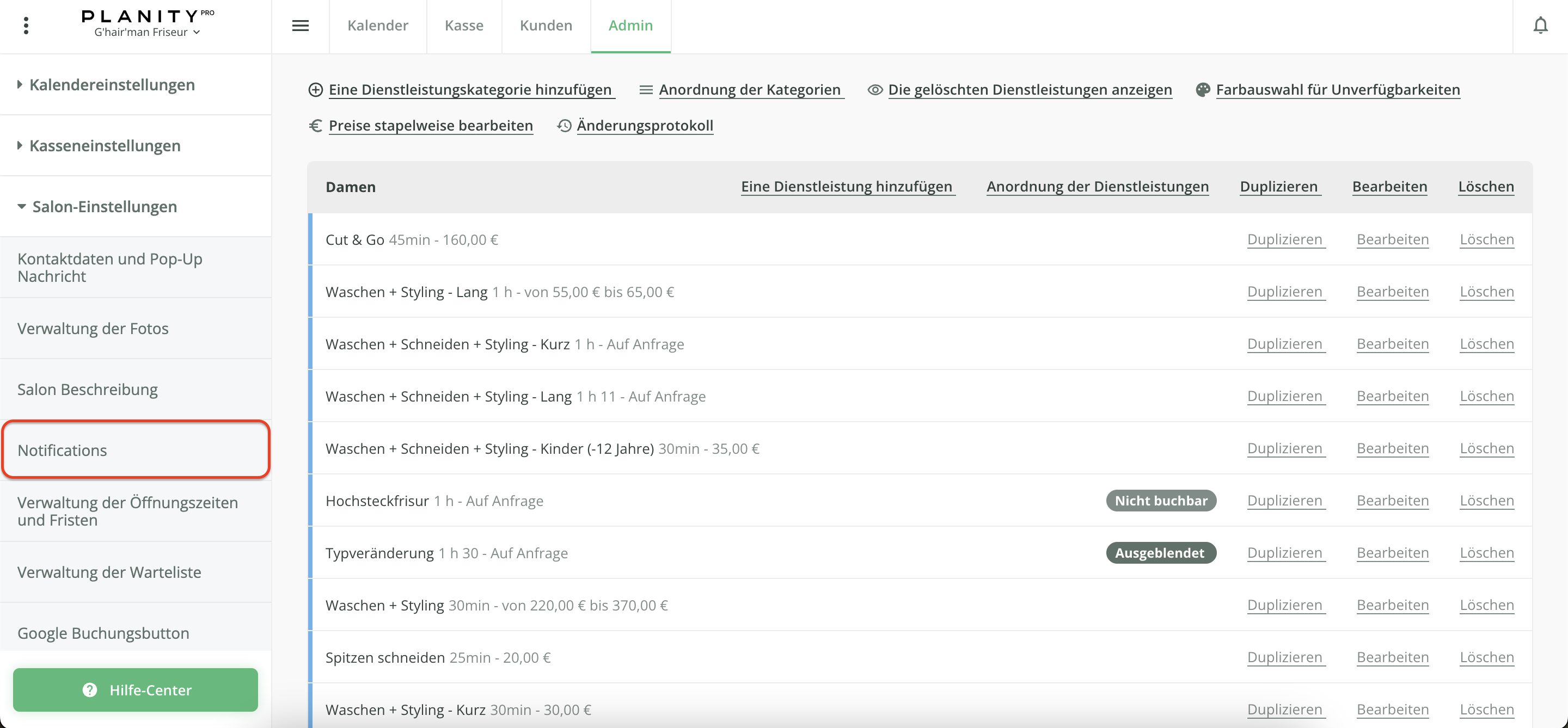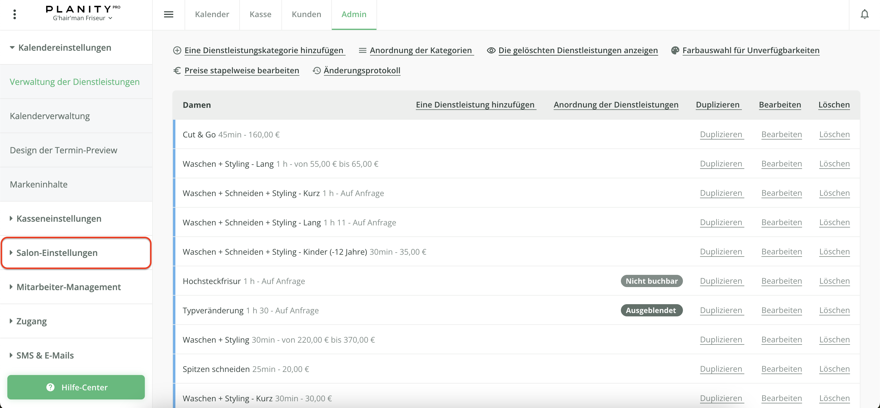 - Klicken Sie auf das Menü Salon-Einstellungen.