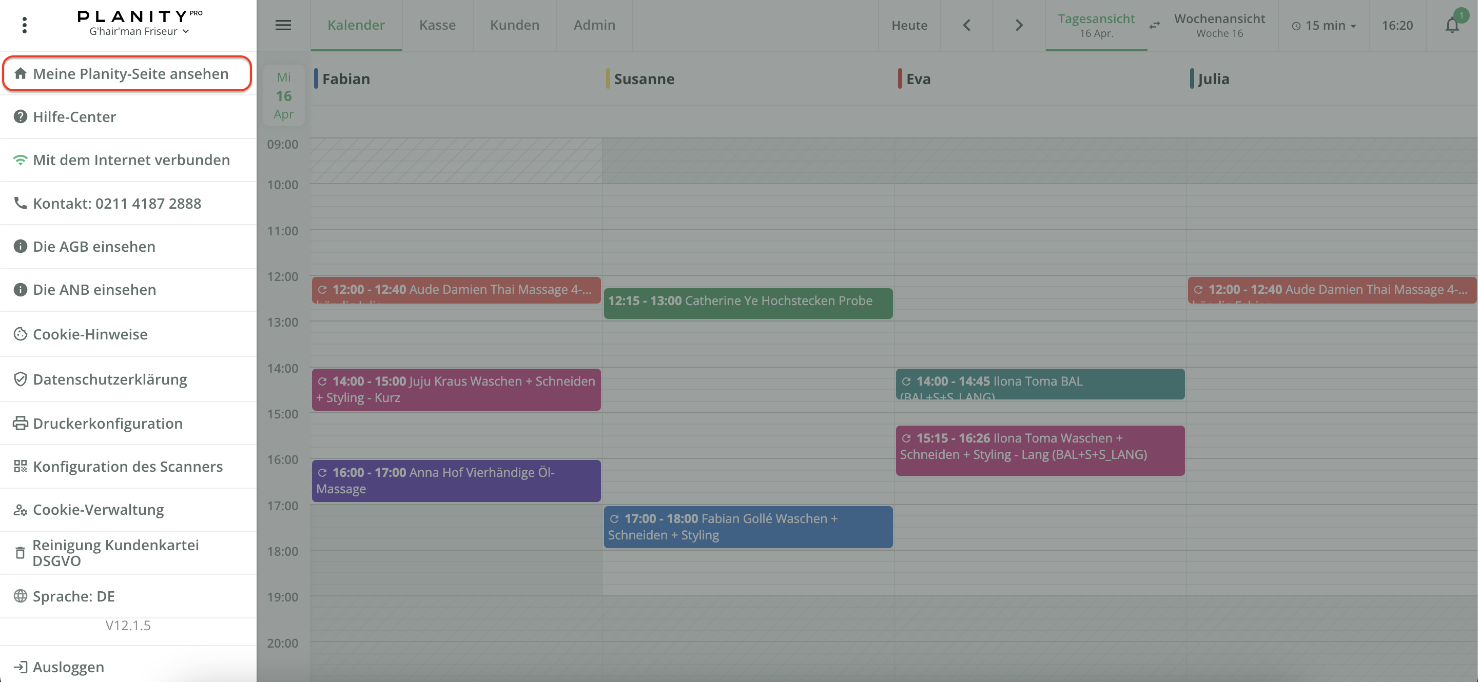 - Sie werden dann auf Ihre Planity-Seite weitergeleitet, also auf die Seite, die Ihre Kunden sehen, wenn sie einen Termin in Ihrem Salon buchen.