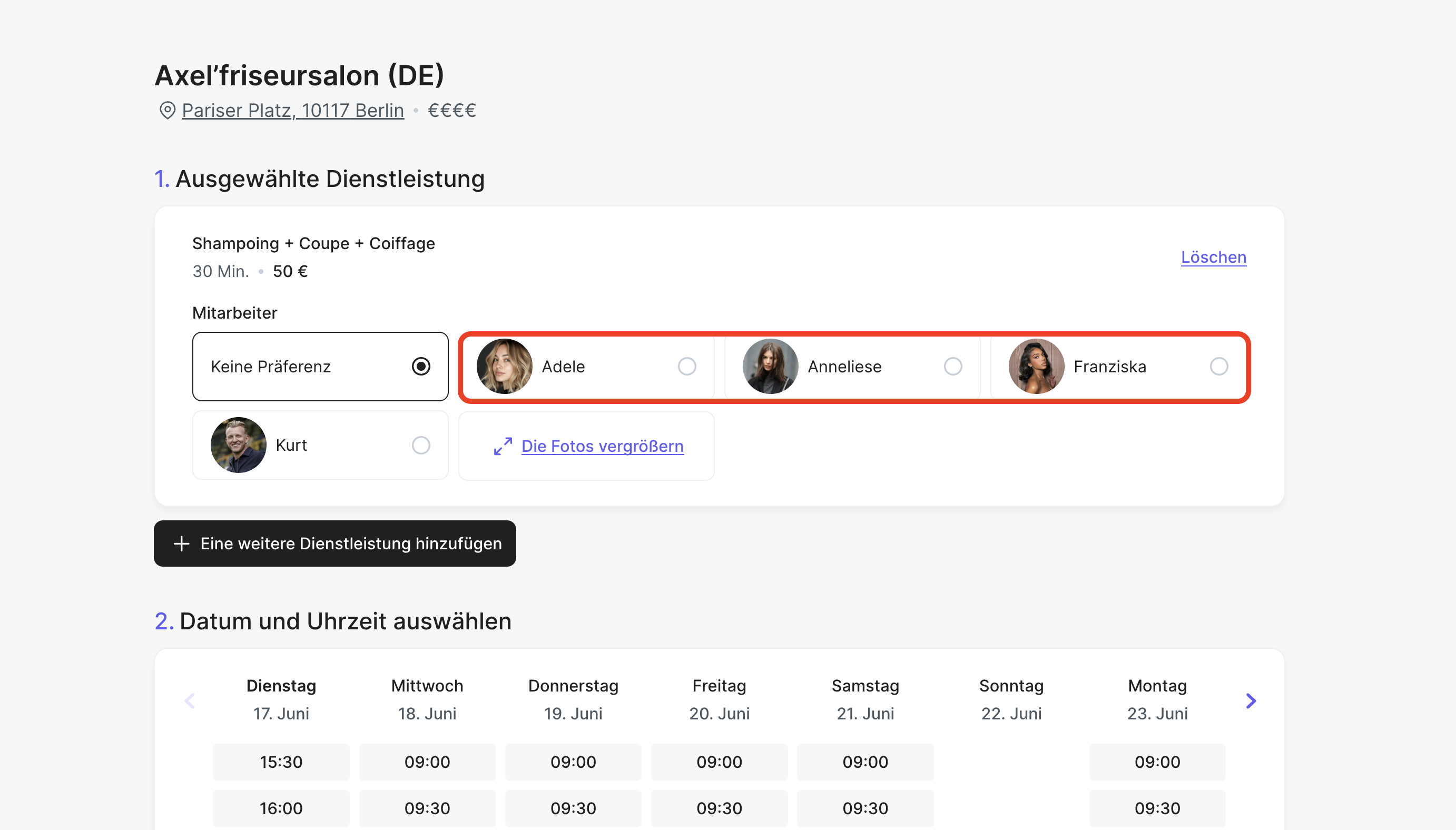 Wie füge ich Fotos von Mitarbeitern in die Online-Terminbuchung ein?