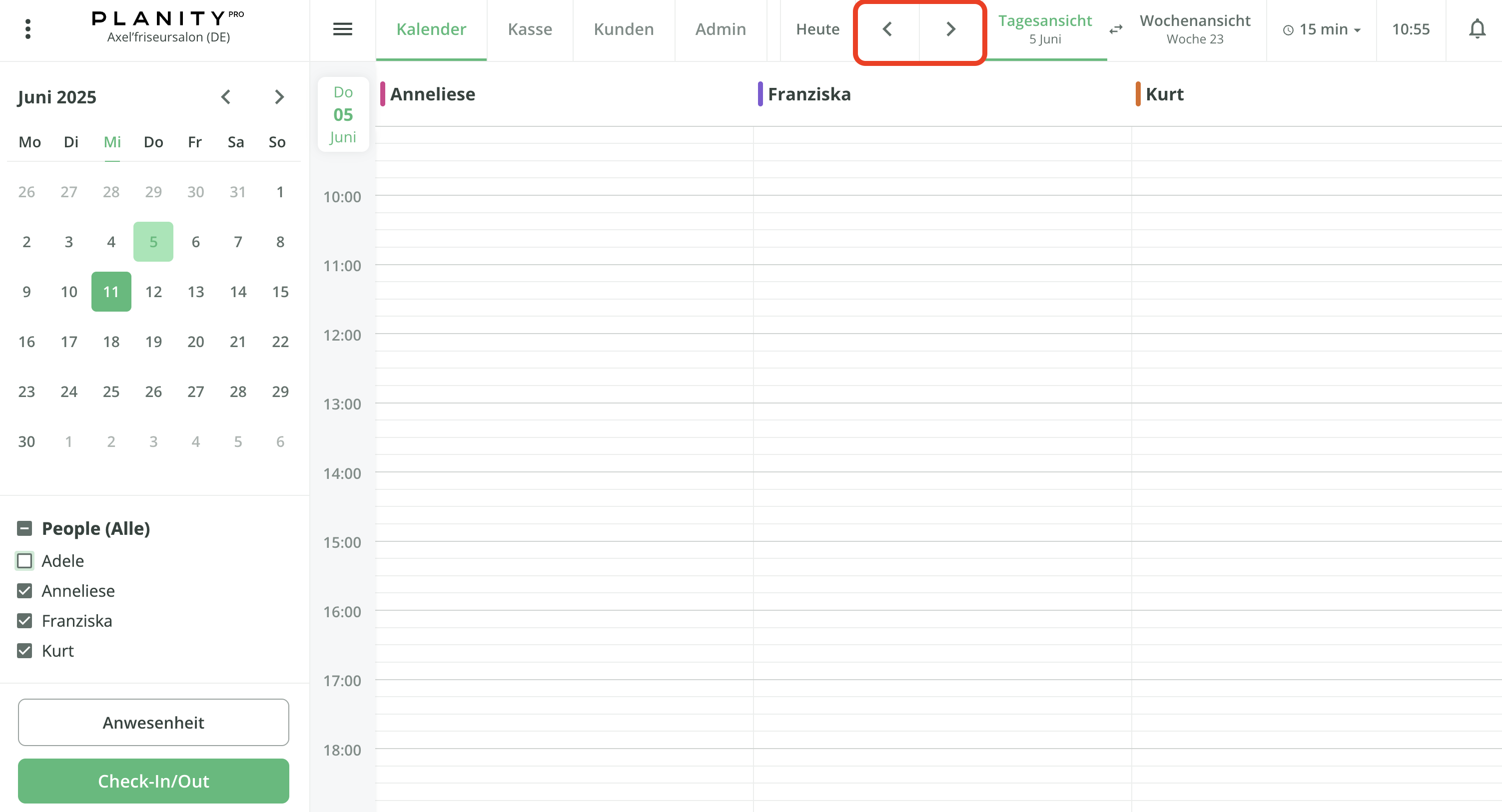 Es gibt 2 Möglichkeiten, in Planity von einem Datum zum nächsten zu wechseln.