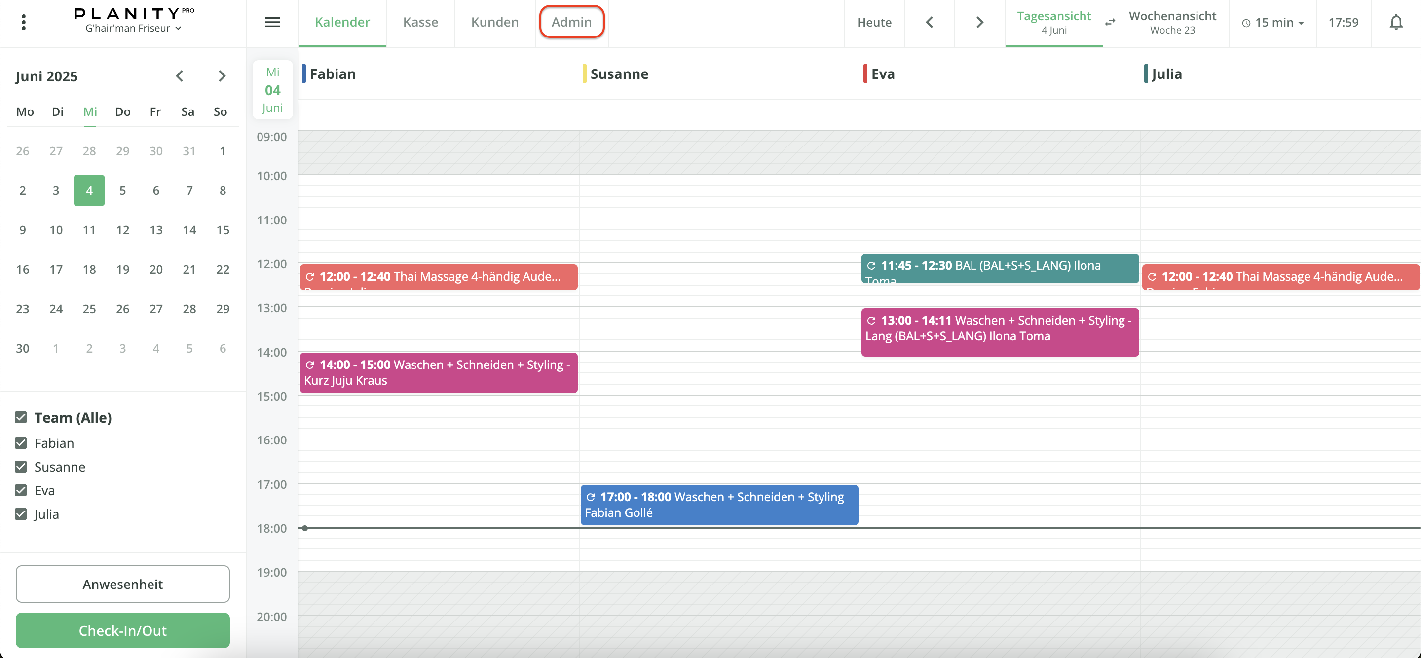 - Zur Erstellung von Check-In/Check-Out-Codes klicken Sie auf die Registerkarte Admin am oberen Rand Ihres Bildschirms.