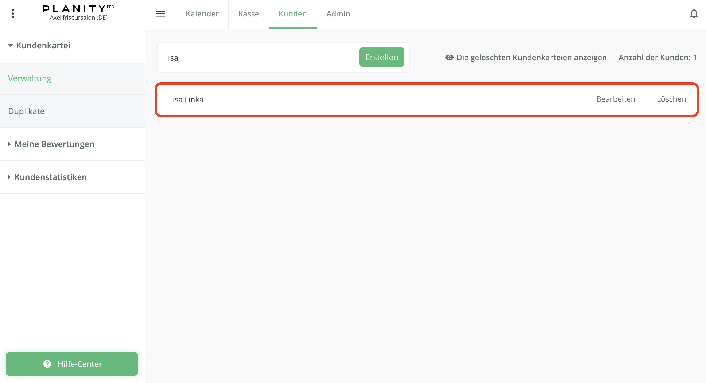 - Geben Sie den Namen des Kunden in die Suchleiste ein.