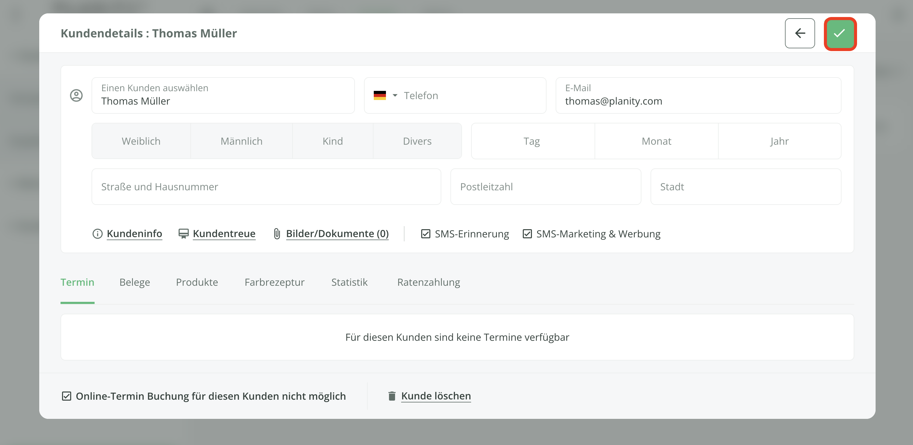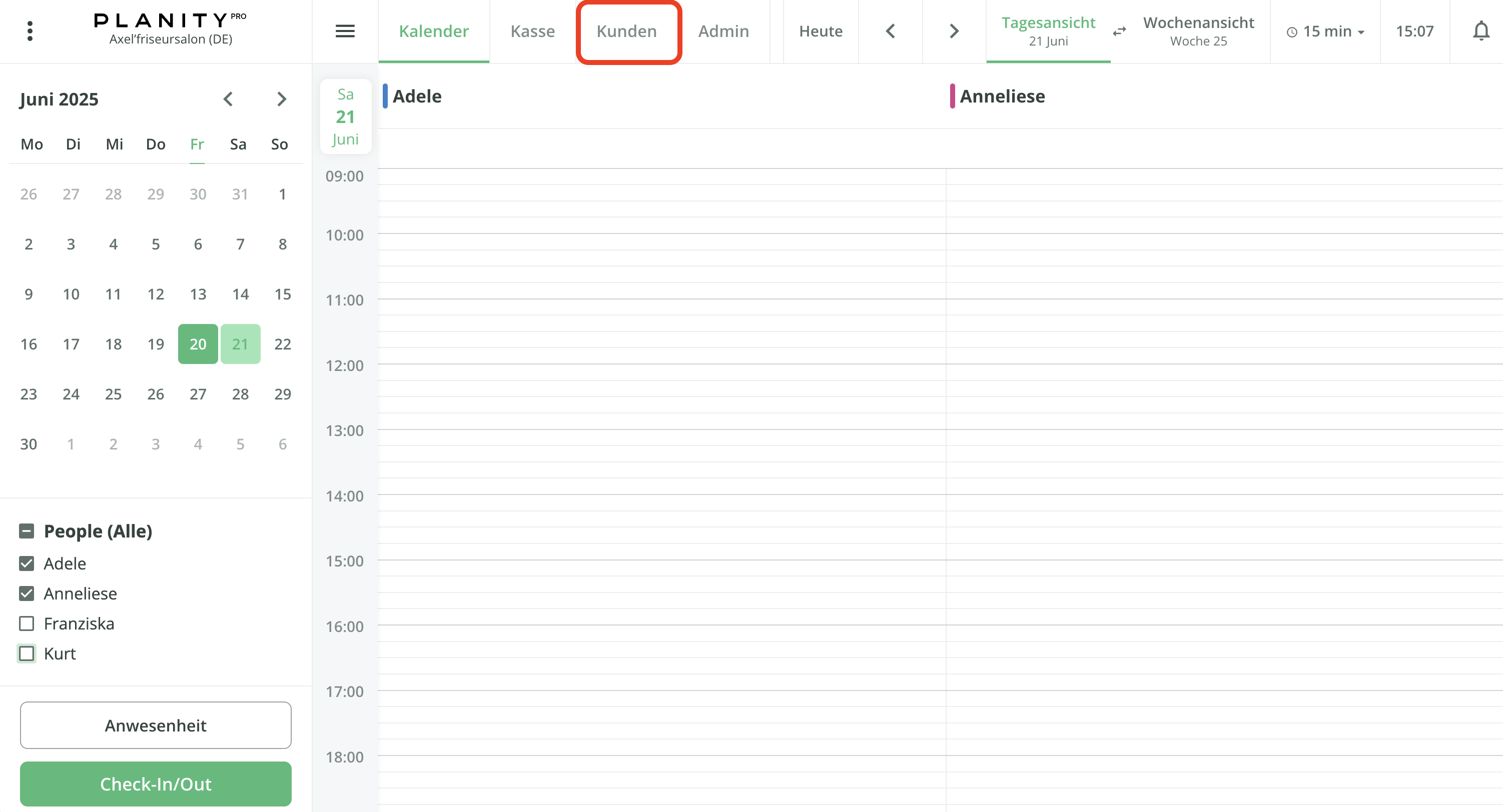 - Klicken Sie auf die entsprechende Zeile des Kunden.