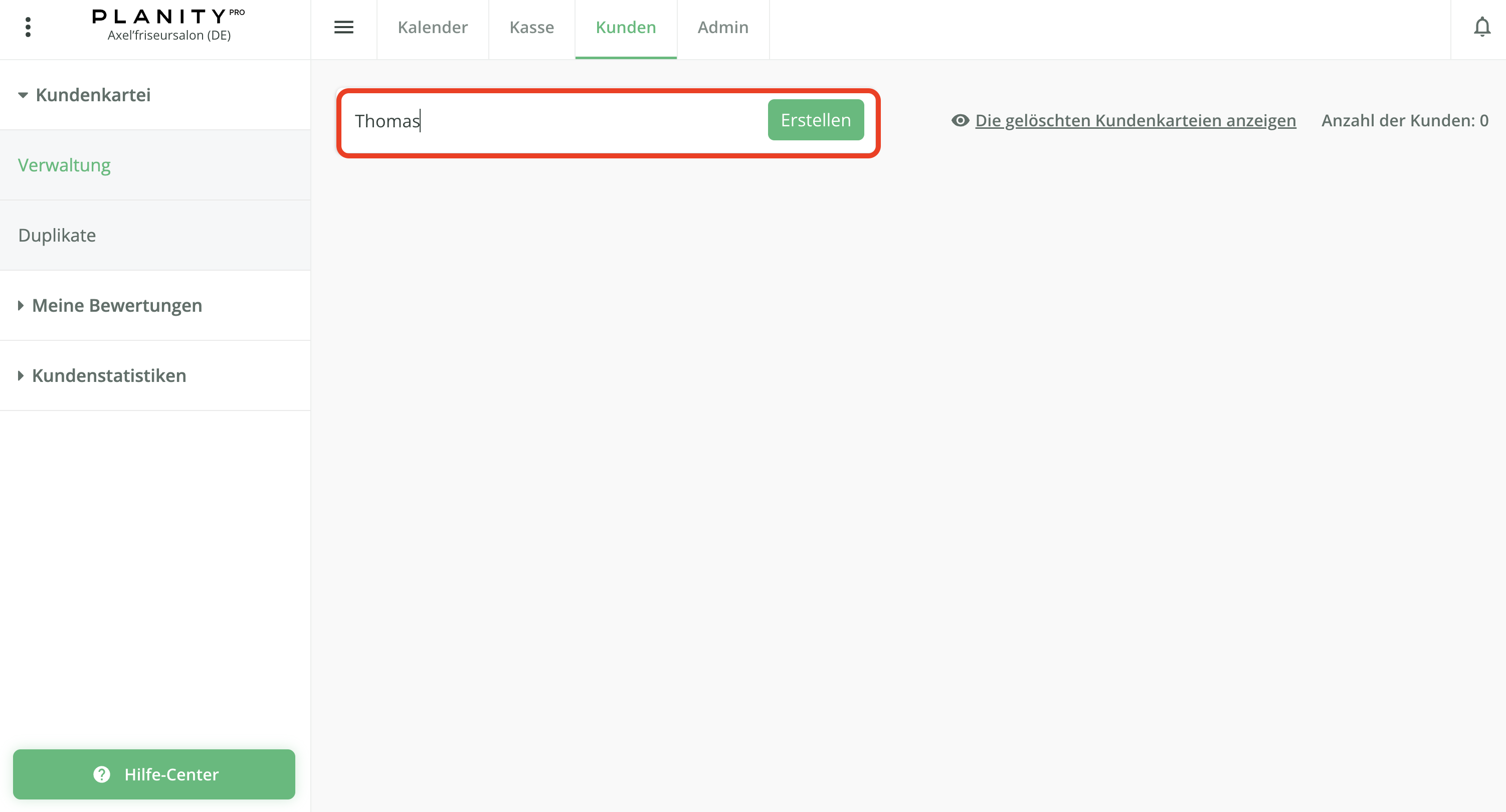 - Geben Sie den Vor- oder Nachnamen des Kunden in die Suchleiste ein.