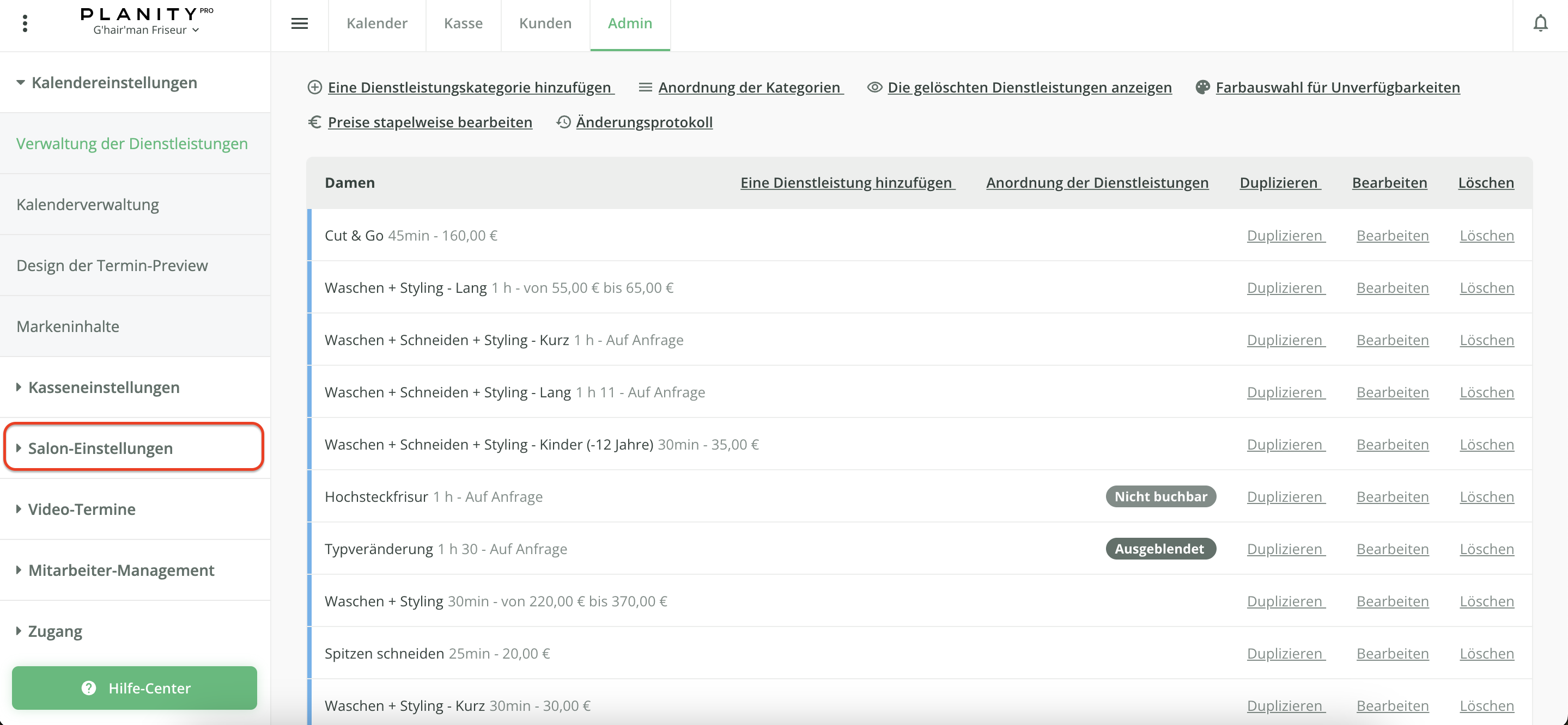 - Klicken Sie am linken Bildschirmrand auf Salon-Einstellungen
