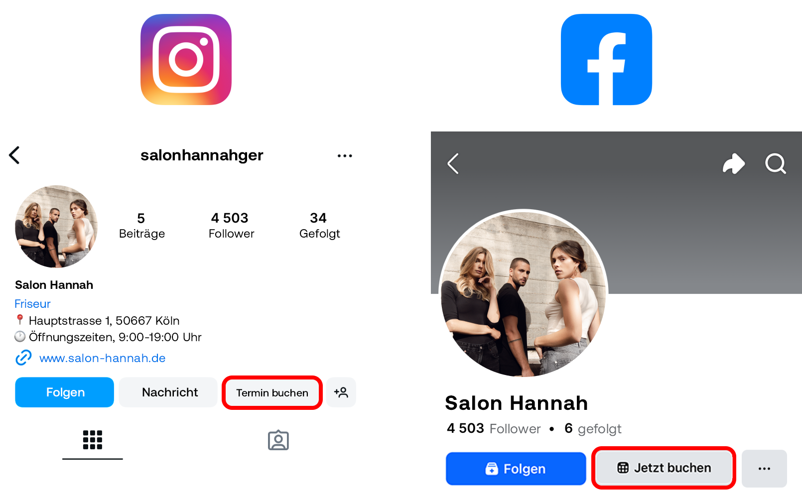 - Eine Facebook-Seite für Ihren Salon konfiguriert haben