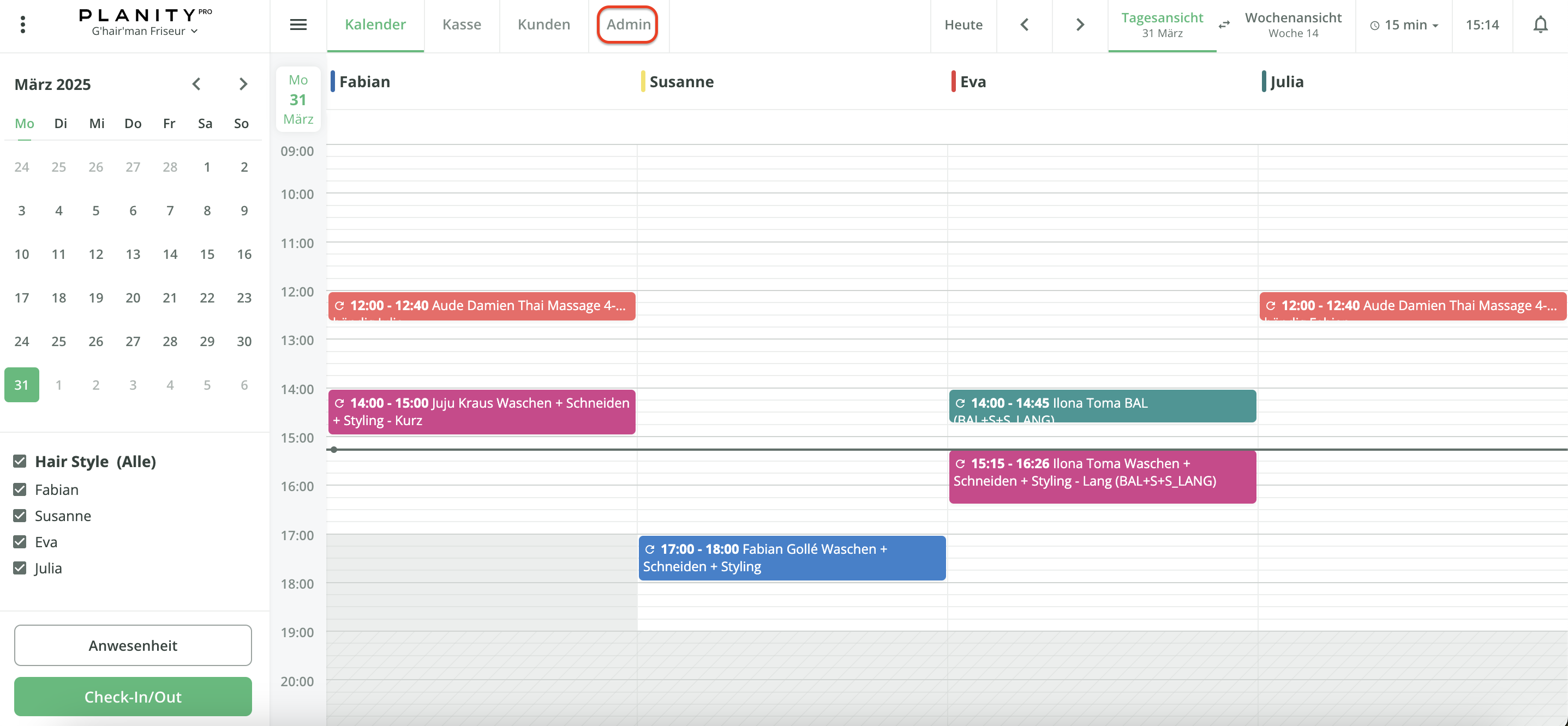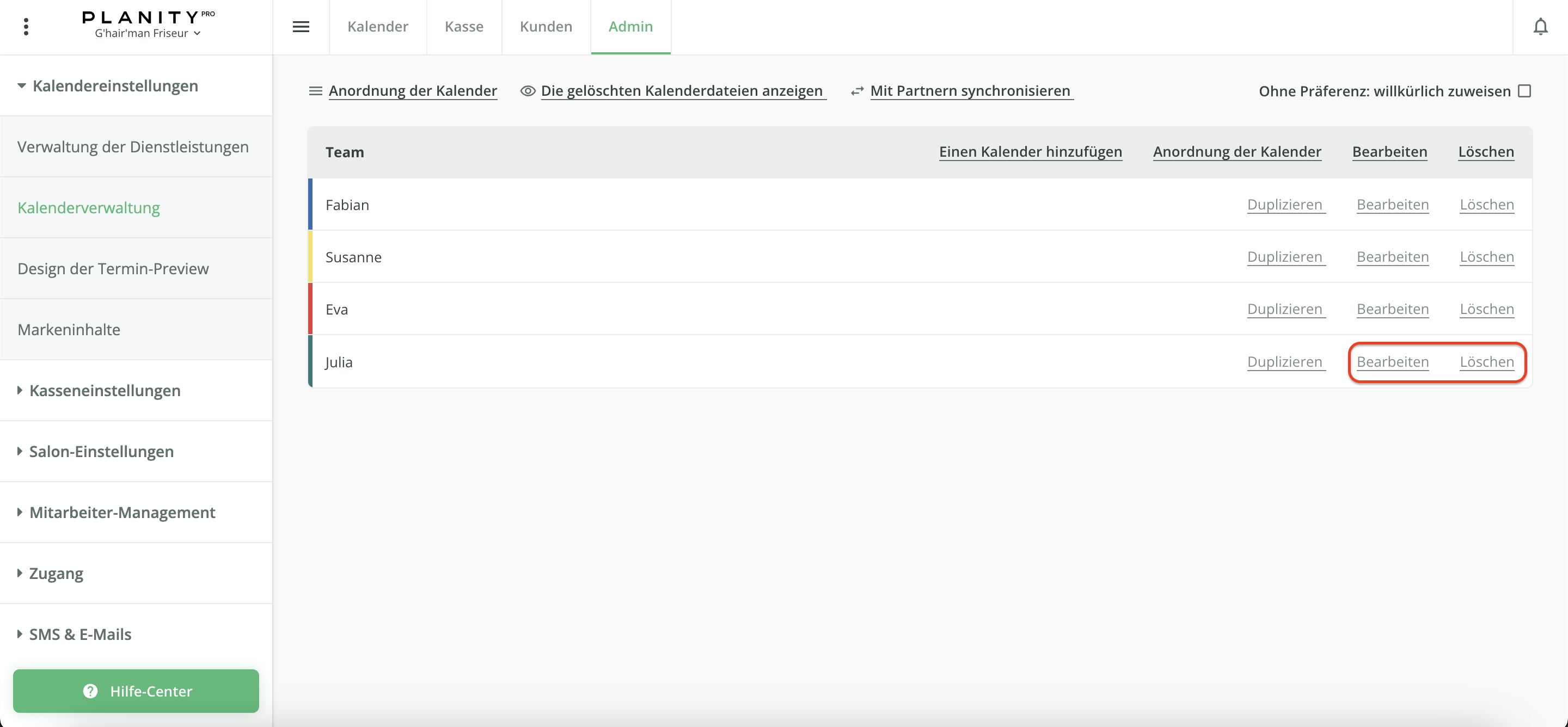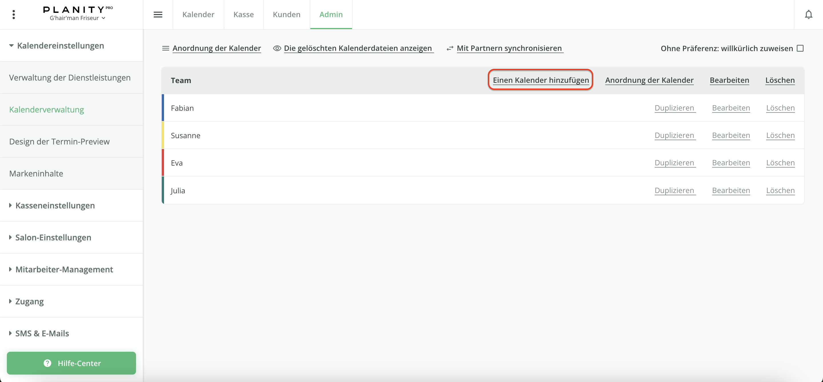 🗓️ In Planity entspricht ein „Kalender“ einem Mitarbeiter.