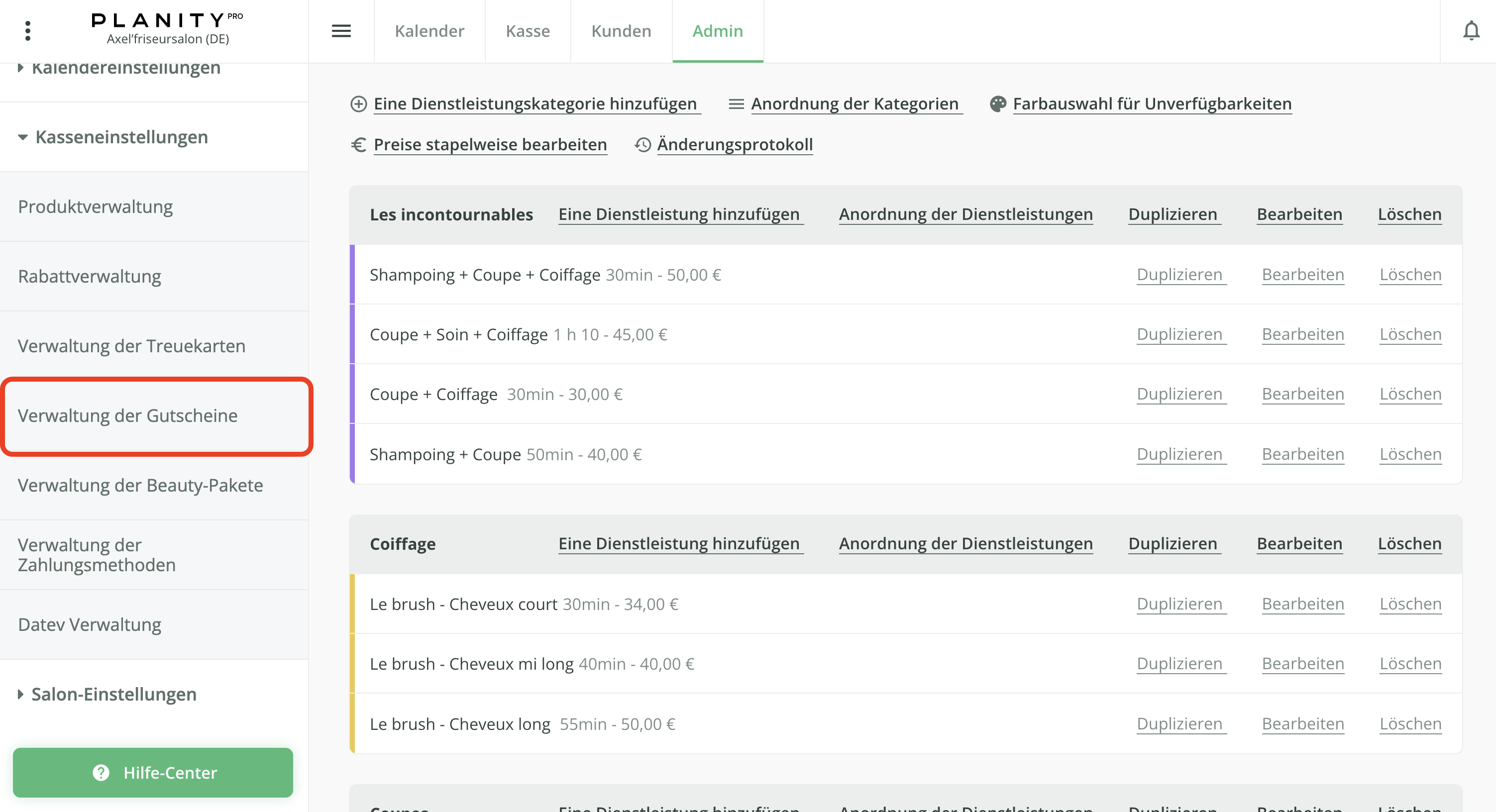 - Klicken Sie auf das Menü „Verwaltung der Gutscheine“