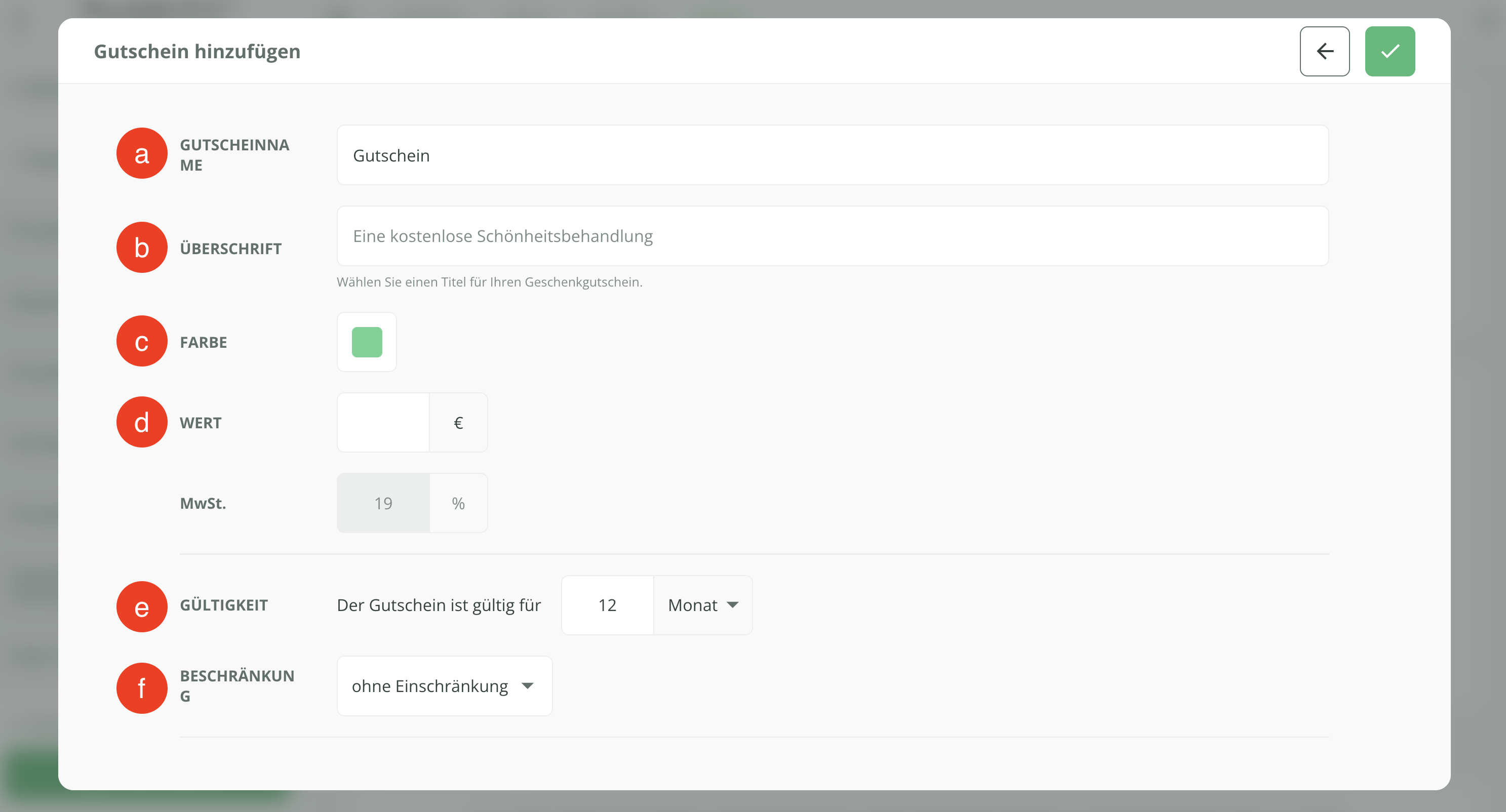 - In diesem Fenster können Sie nun einen Gutschein erstellen und individuell gestalten: