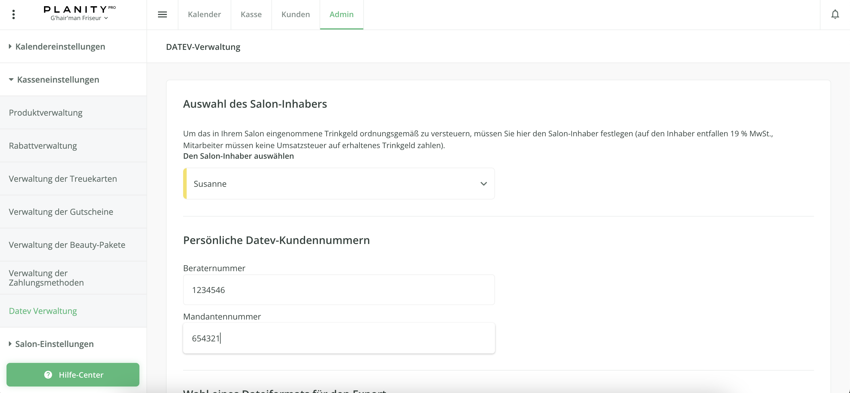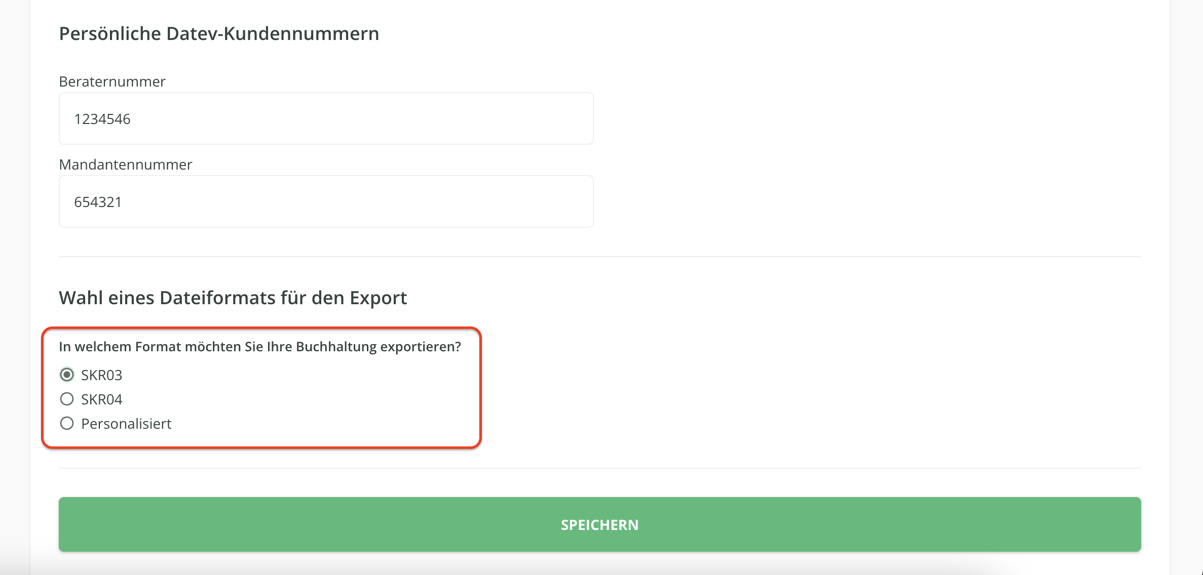 - Sie können Ihre persönlichen Datev-Kundennummern eingeben: