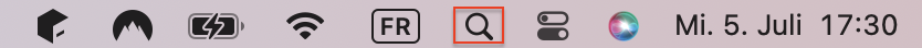 - Klicken Sie oben rechts auf die Lupe und geben Sie Terminal ein, um das das Terminal auf Ihrem Mac zu öffnen