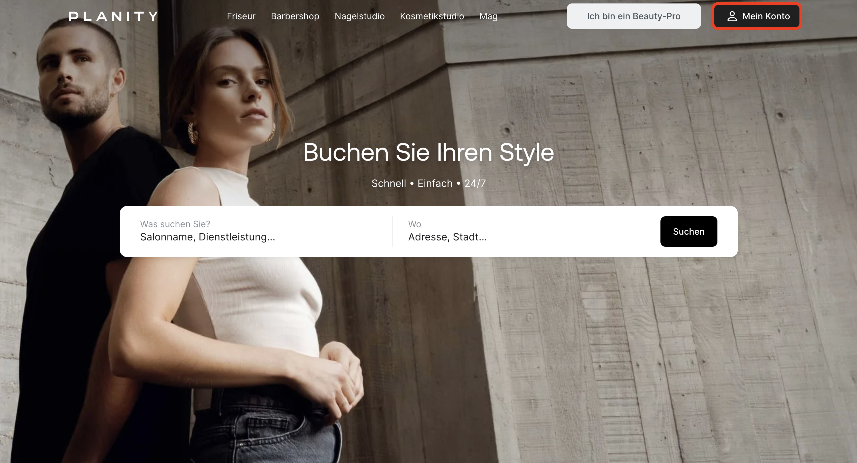 - Wenn Sie Ihr Passwort zurücksetzen möchten und nicht angemeldet sind, gehen Sie auf https://planity.com/ und klicken Sie auf Anmelden.