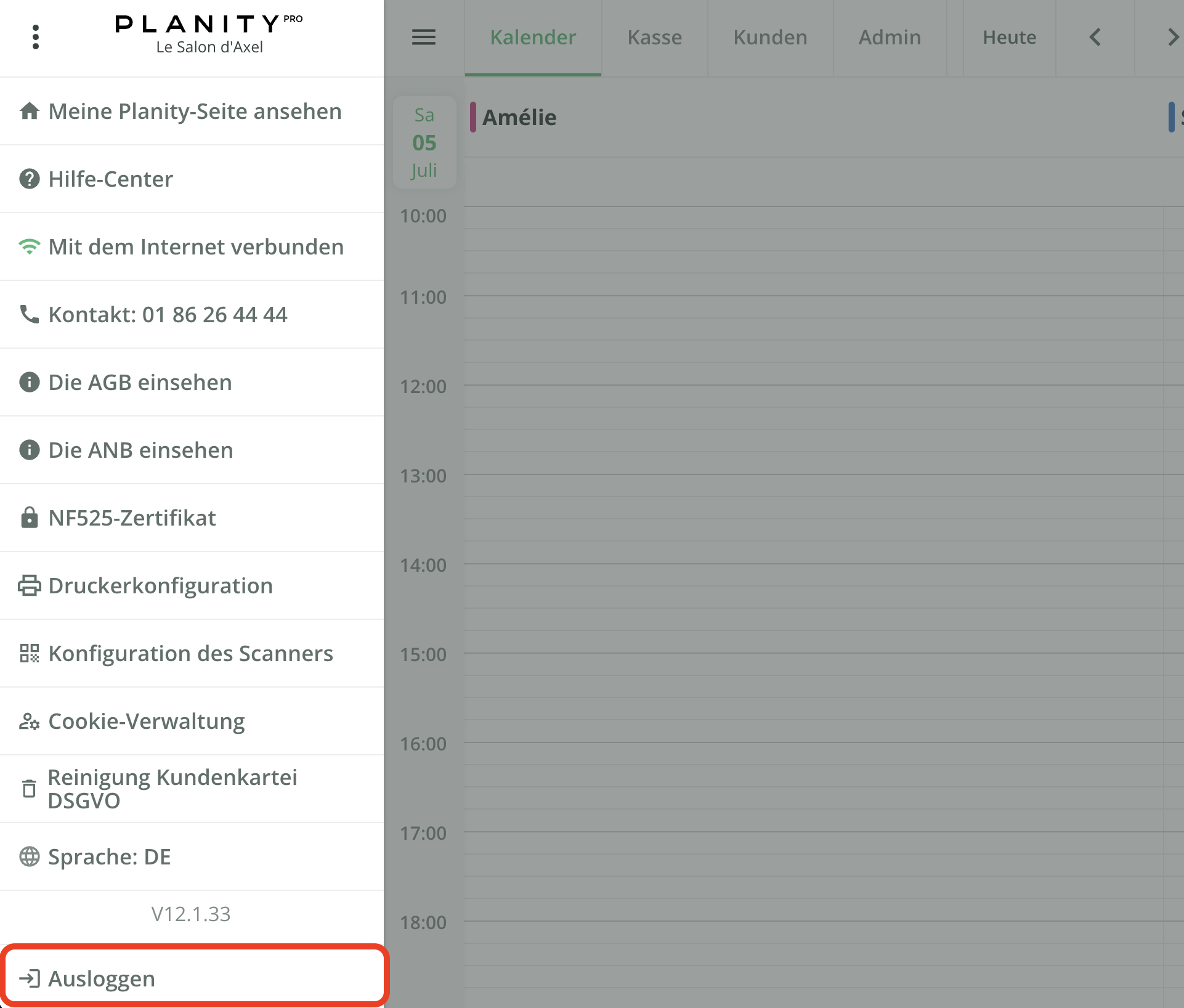 - Melden Sie sich unten links auf Ihrer Seite ab (rot umrandet).