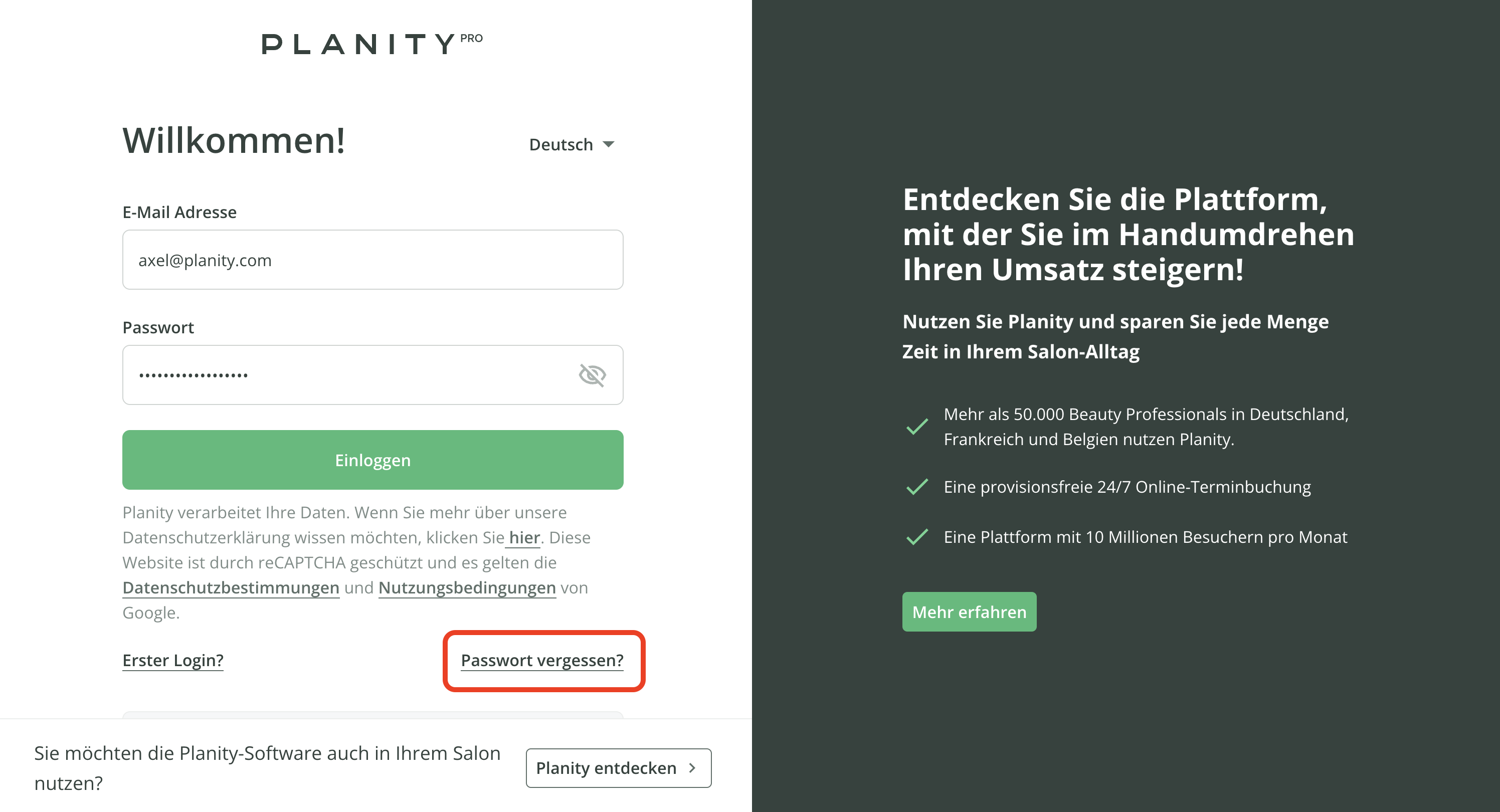 Wie kann ich als Nutzer von planity.com mein Passwort ändern oder zurücksetzen?