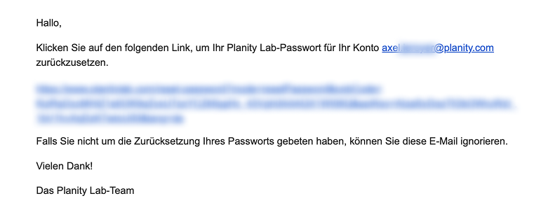 - Geben Sie die E-Mail-Adresse Ihres Planity Pro-Kontos ein. An diese Adresse wird ein Link geschickt, mit dem Sie Ihr Passwort zurücksetzen und ändern können.