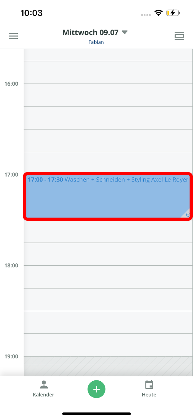 - Und schon erscheint der Termin als bezahlt in Ihrem Kalender.