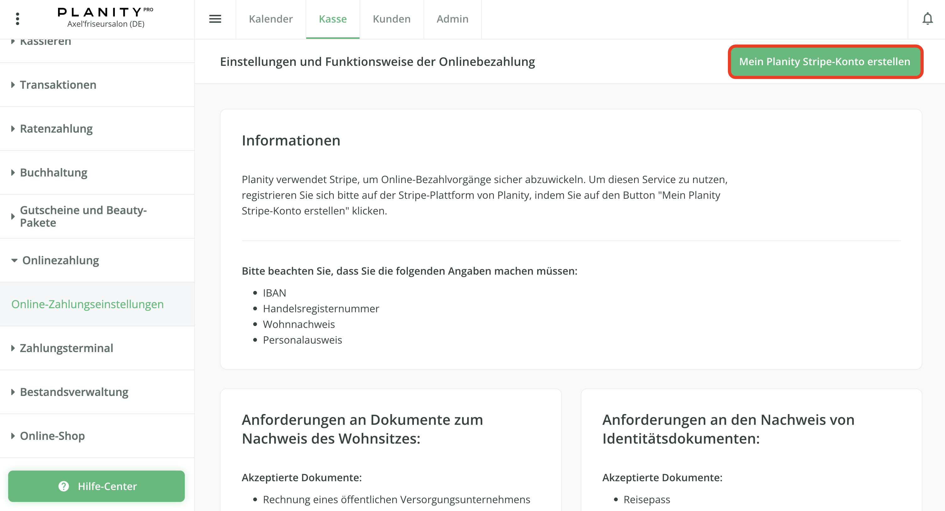 - Nachdem Sie Ihr Planity Stripe Connect-Konto erstellt haben, wenden Sie sich bitte an den Planity-Kundendienst unter der Nummer 0211 4187 2888, und ein Mitarbeiter wird sich um das Hinzufügen der Vorauszahlung kümmern.