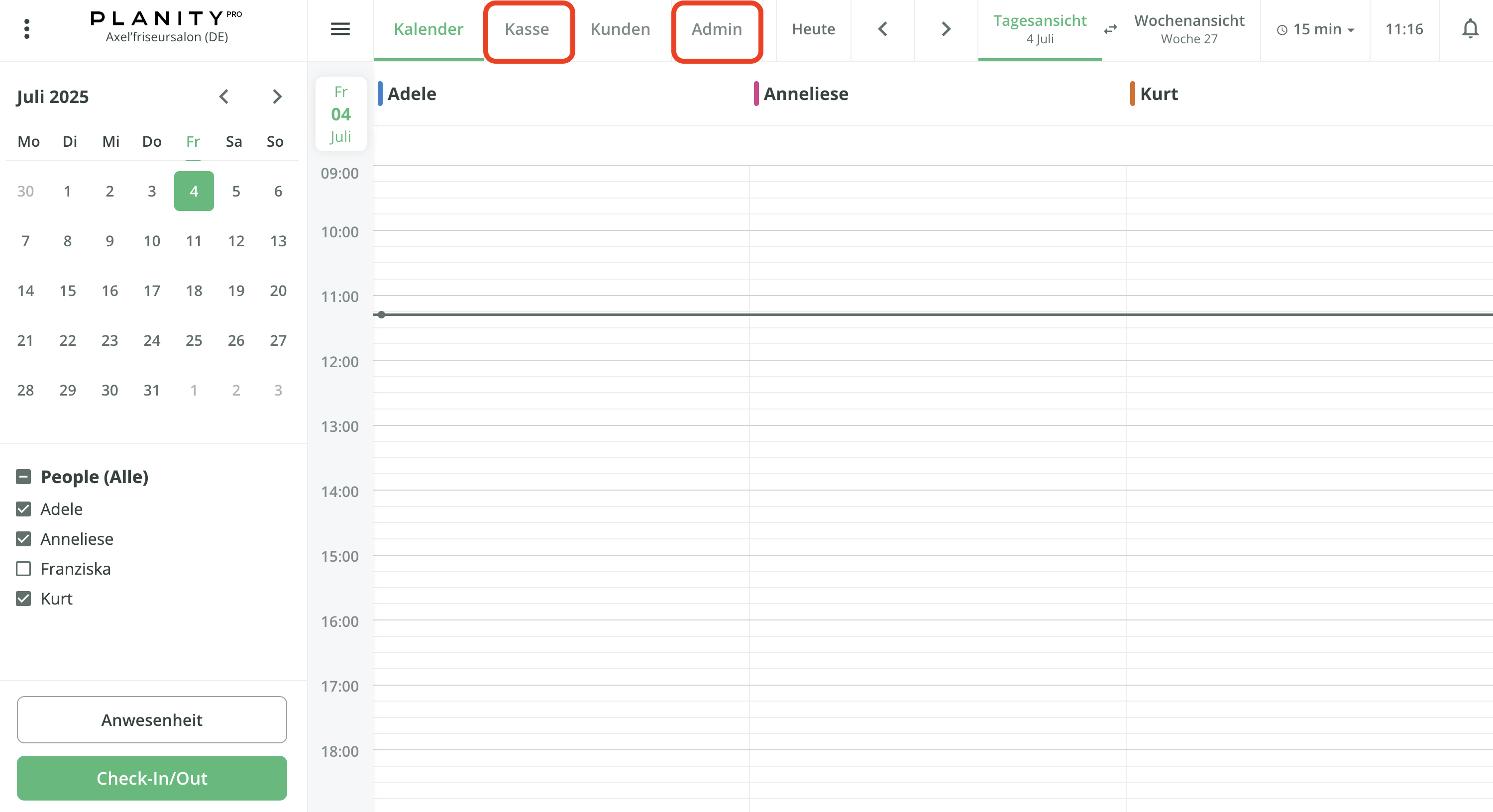 Wenn Sie die Kasse nicht haben: Gehen Sie auf die Registerkarte „Admin“.