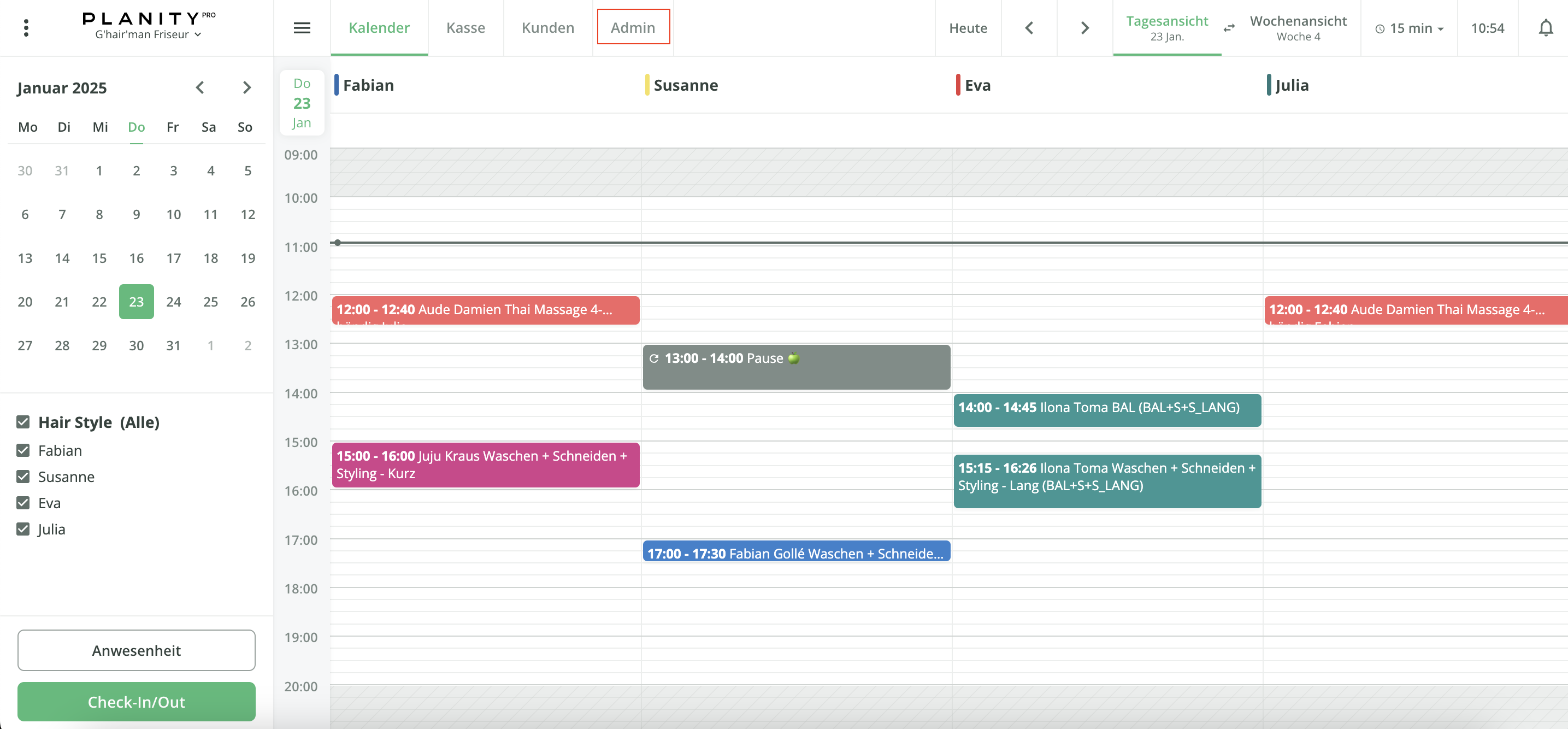 - Loggen Sie sich über einen PC oder Tablet in Ihr Planity Pro Konto ein und klicken Sie oben im horizontalen Hauptmenü auf Admin