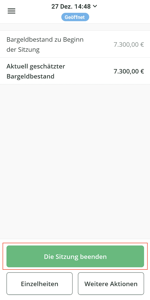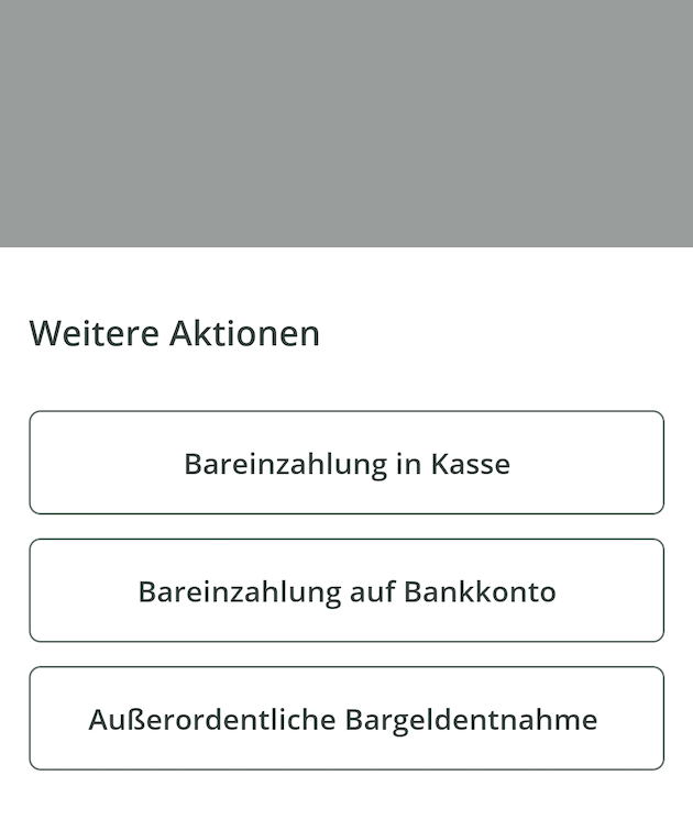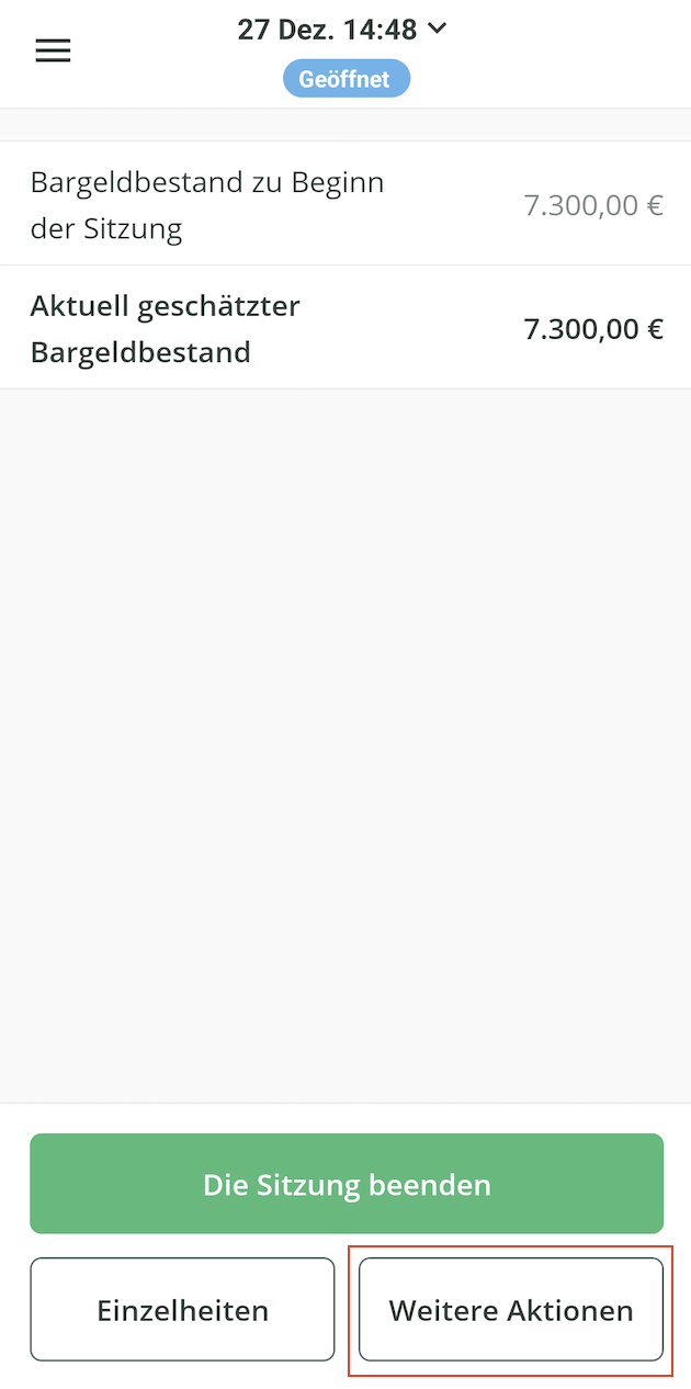 Sobald Sie eine Kassensitzung geöffnet haben, erscheint unten rechts der Button Weitere Aktionen.