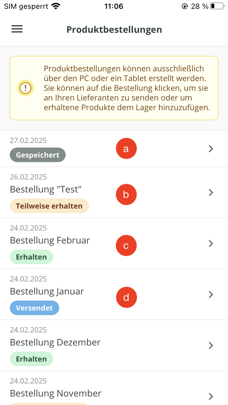 - Für bereits erhaltene Bestellungen, können Sie eine Bestellübersicht aufrufen, um zu kontrollieren, ob Sie an alle Produkte gedacht haben.