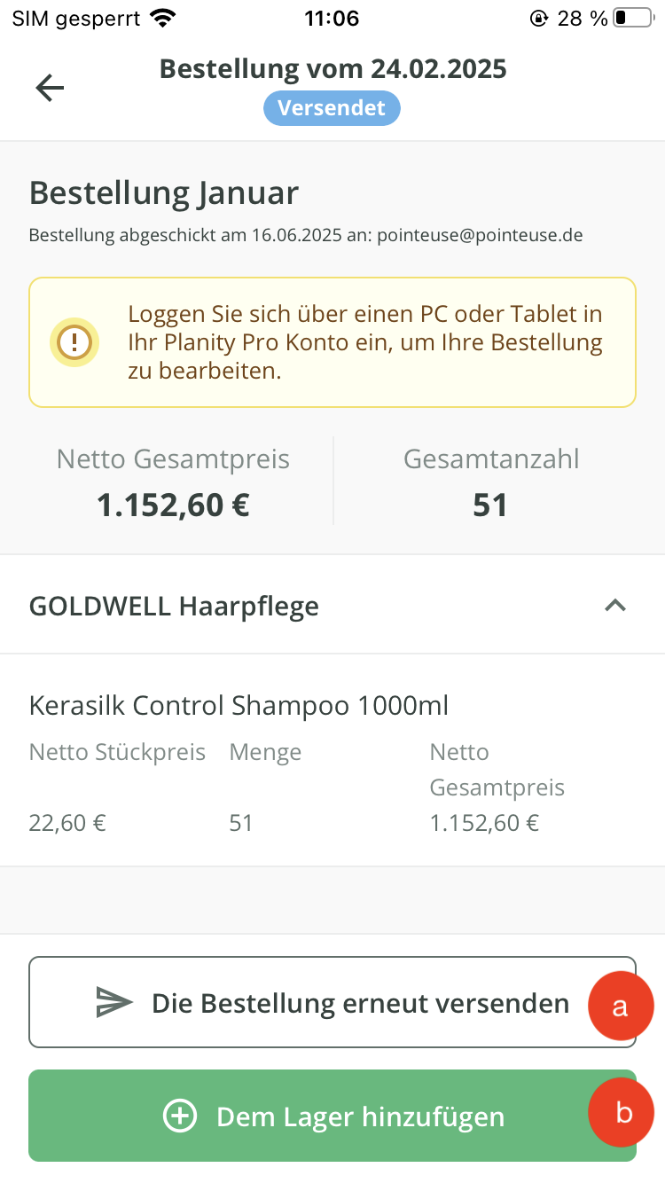 - Die Bestellung erneut an Ihren Lieferanten senden