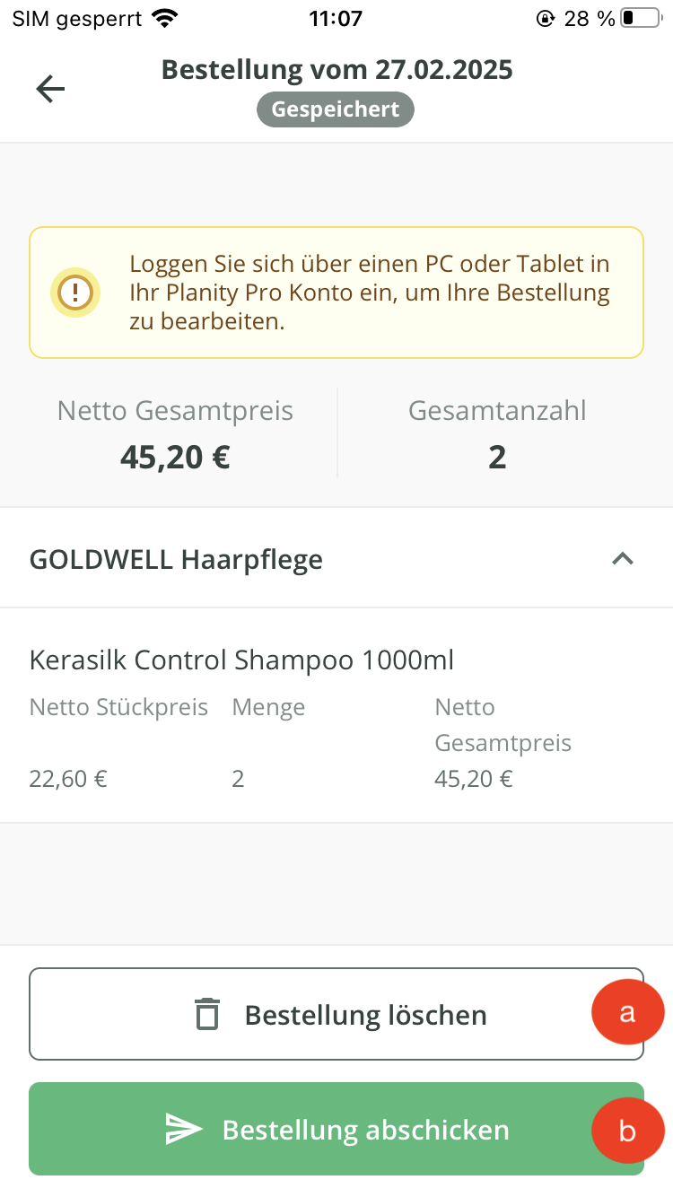 - Folgende Aktionen können Sie für zwischengespeicherte Bestellungen über Ihr Smartphone vornehmen: