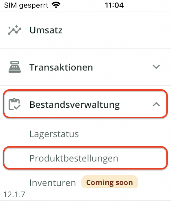 - Klicken Sie nun auf Lagerverwaltung und anschließend auf Produktbestellungen