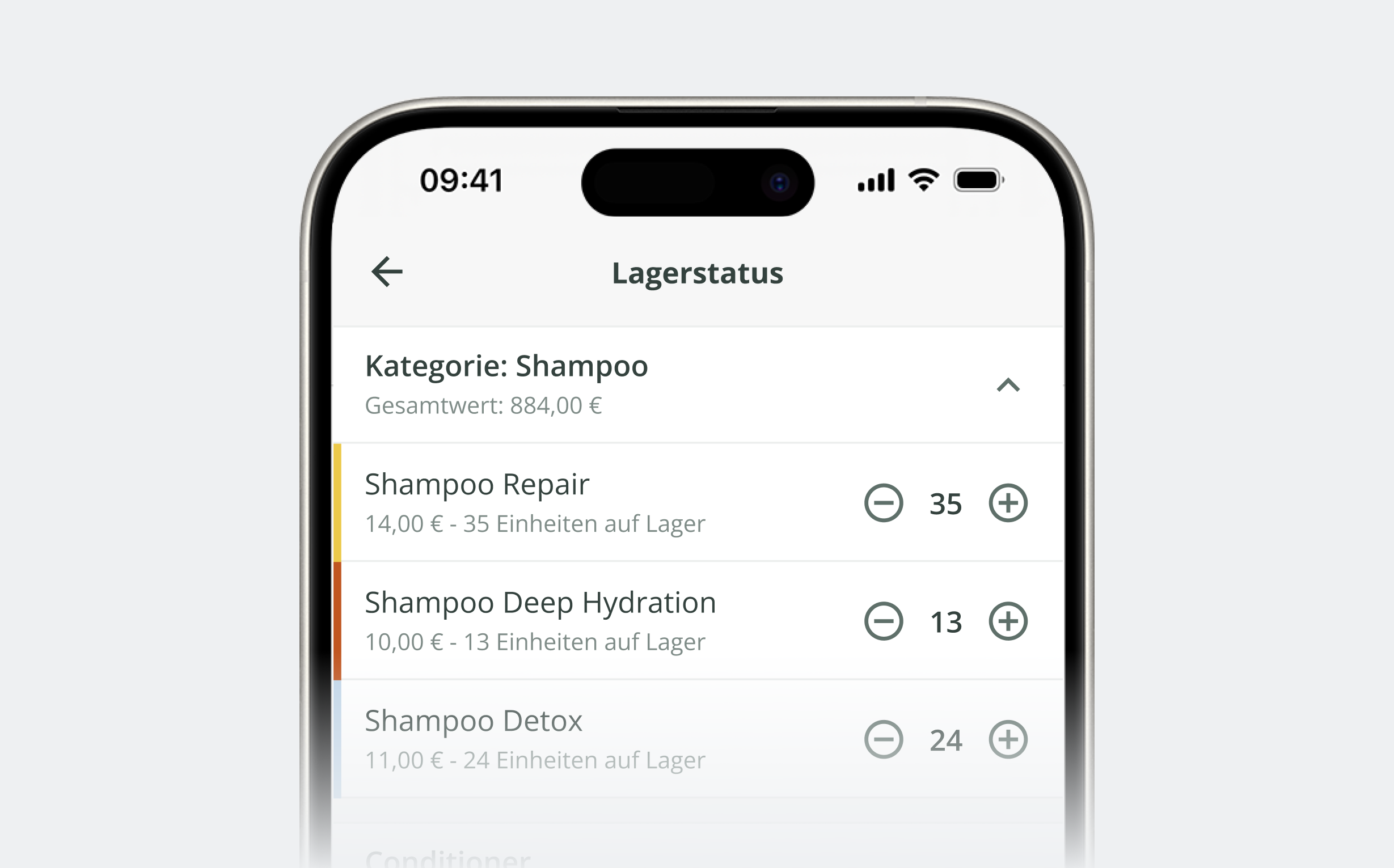 Ab sofort können Sie Ihre Inventuren direkt über Ihr Smartphone verwalten. Über die Planity Pro App Mobil können Sie eine Produktliste aufrufen, in der Ihre Produkte mit dem aktuell geschätzten Lagerbestand angezeigt werden. Zählen Sie nun die vorhandenen Produkte im Salon und geben Sie die tatsächliche Menge in das vorgesehene Feld ein. Anschließend werden Ihre Bestände in Echtzeit entsprechend den gezählten Mengen aktualisiert.