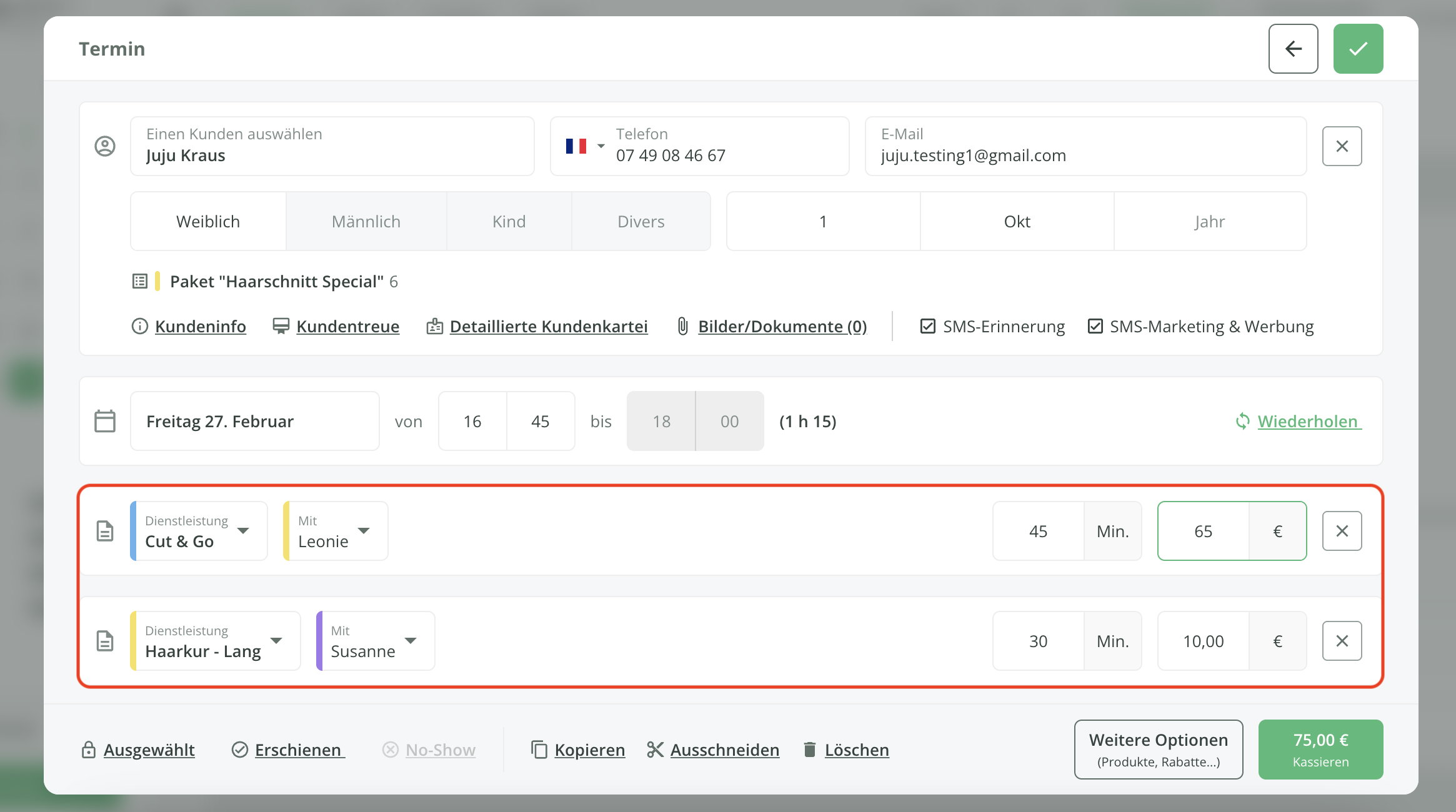 ℹ️ Achten Sie darauf, dass der Termin mindestens 2 Dienstleistungen enthält.