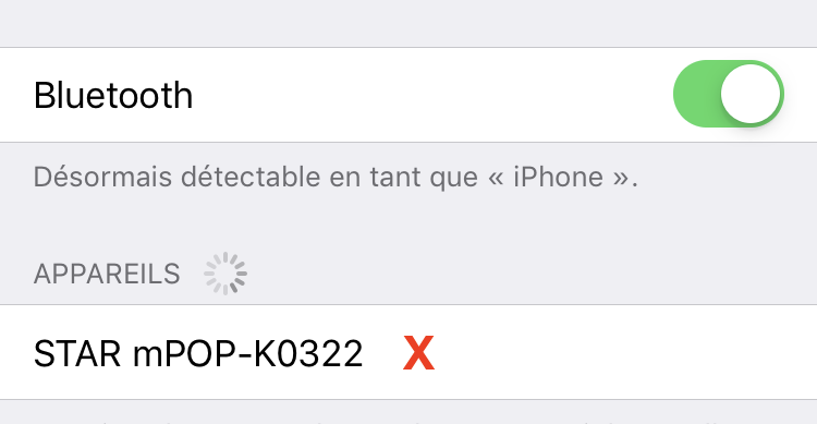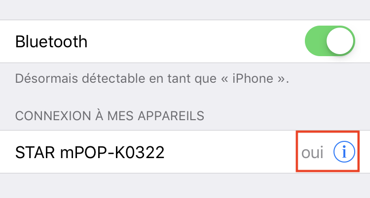 - Désactivez puis réactivez le Bluetooth afin de revoir la ligne star Mpop.
