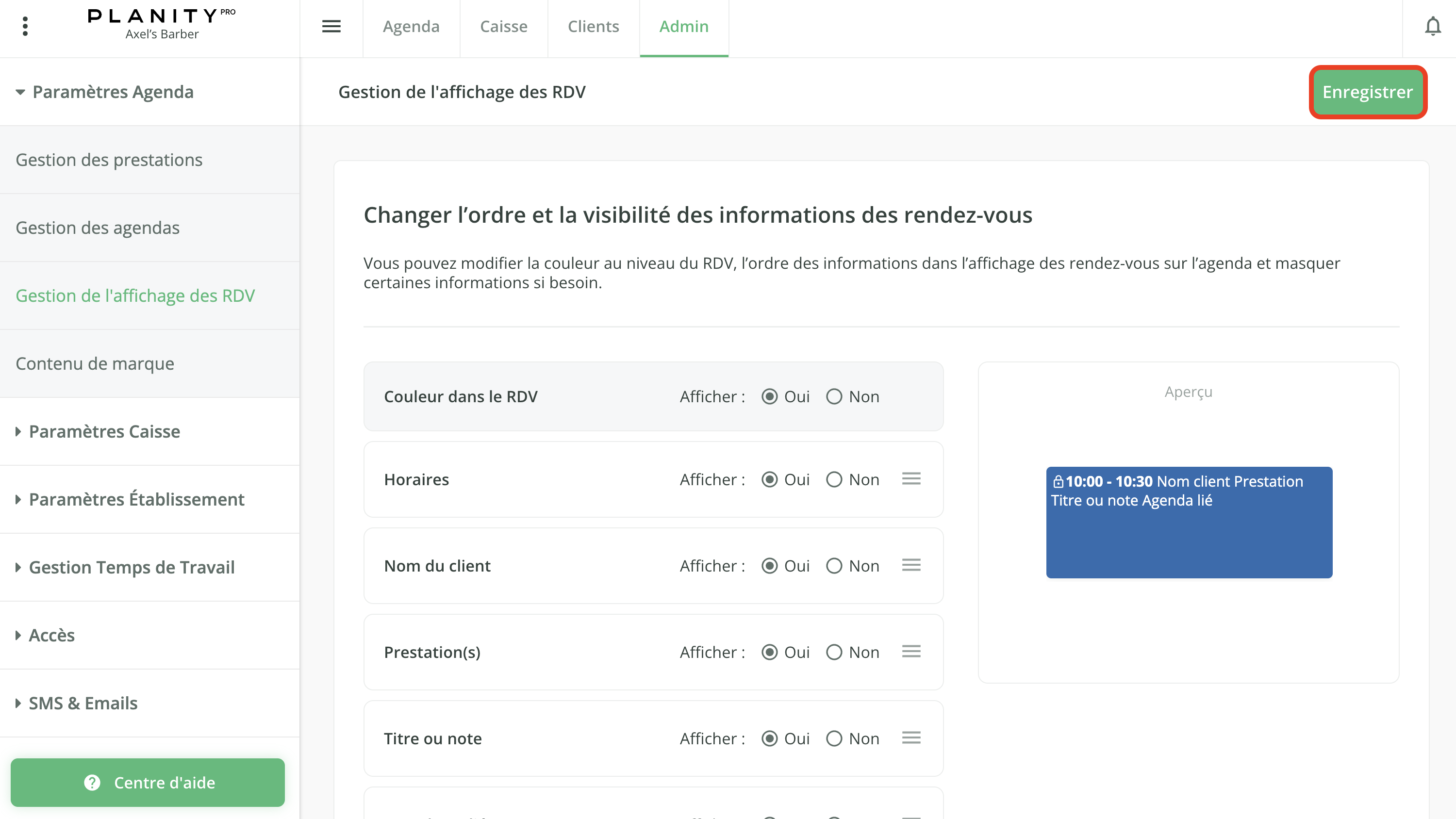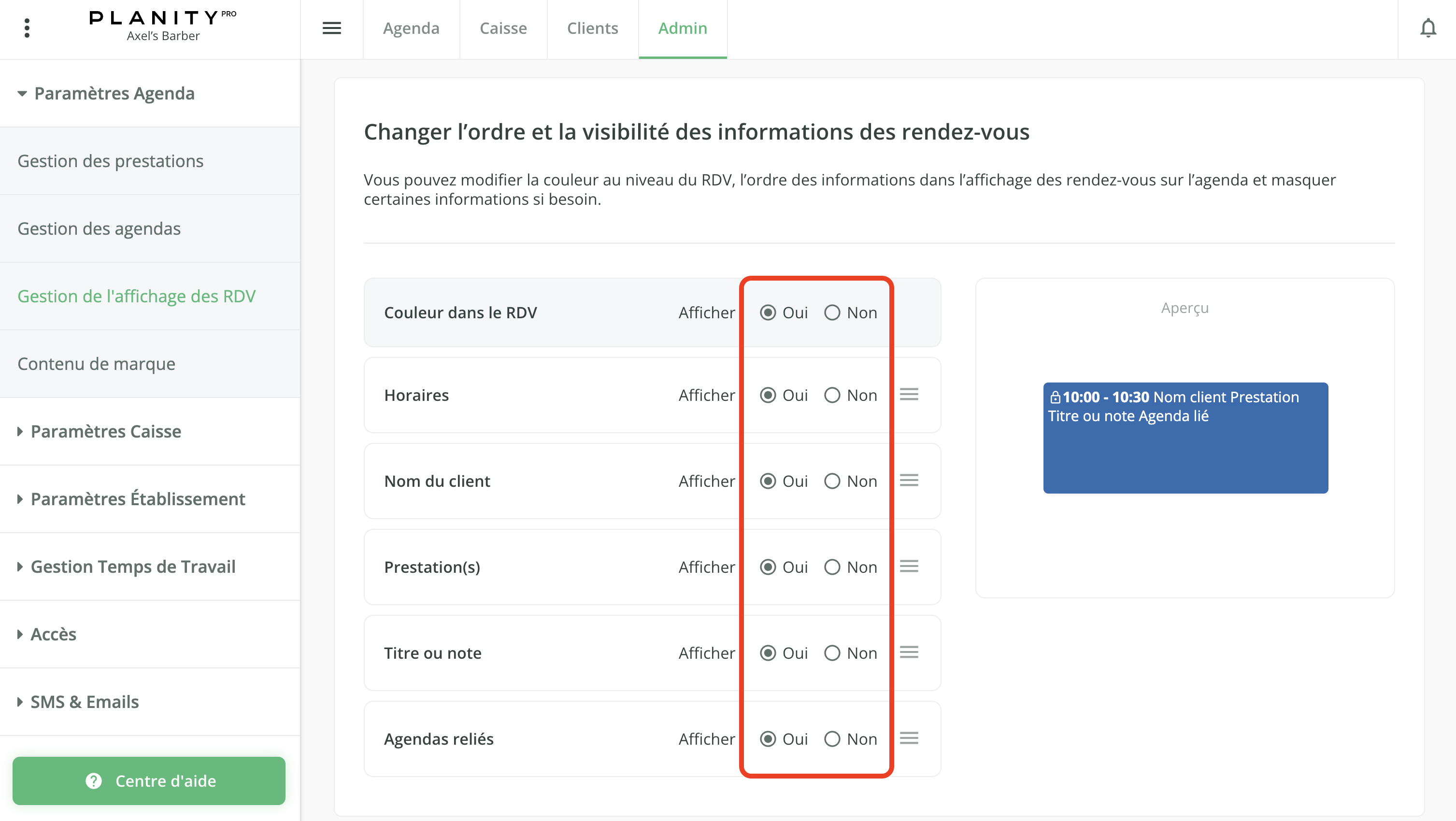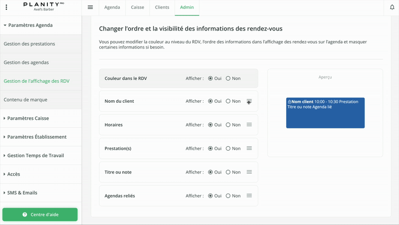 - Choisissez les informations que vous souhaitez voir apparaître sur les rendez-vous de votre agenda.
