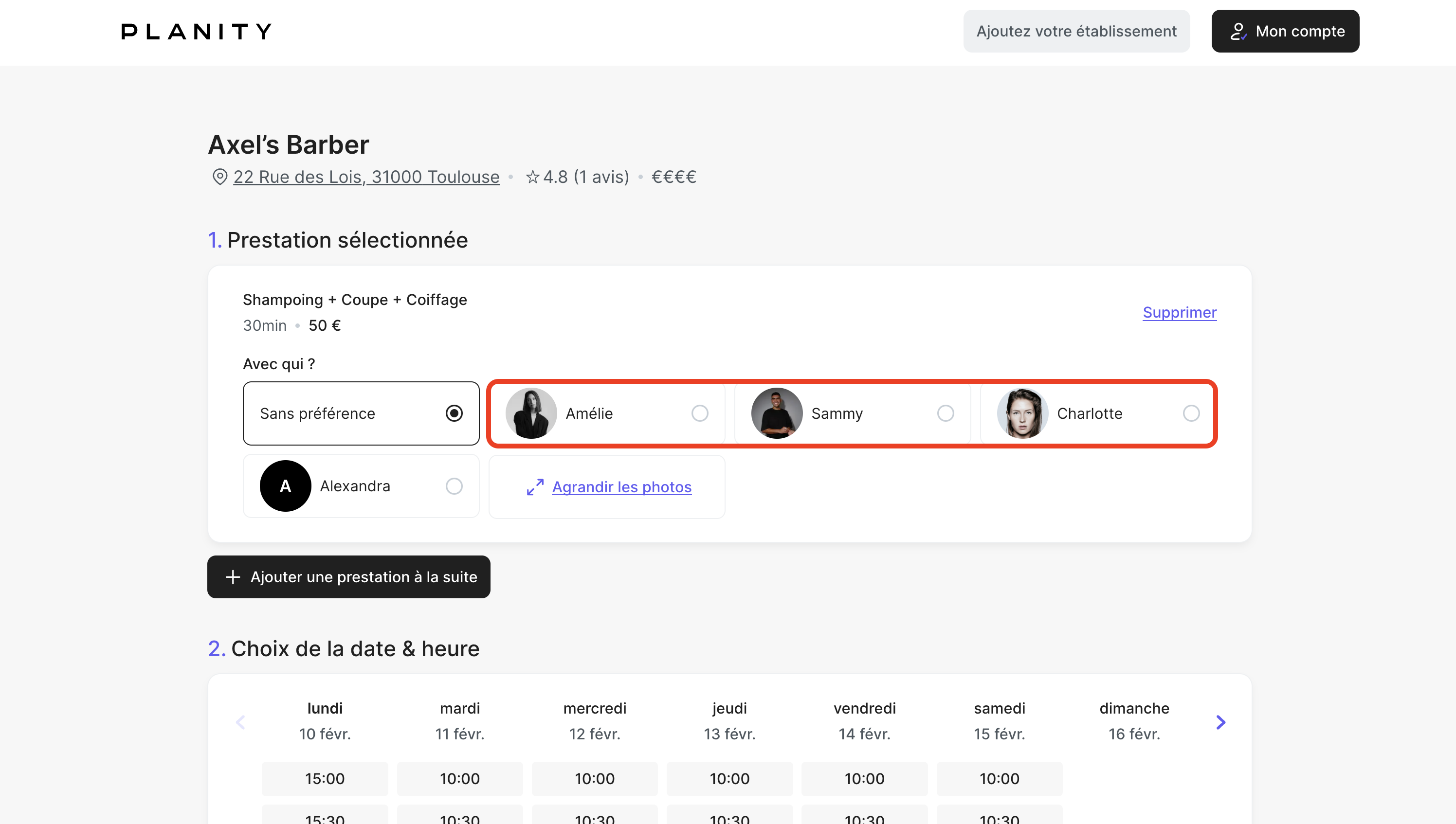 - Une fois téléchargée, la photo sera affichée au moment de la prise de rendez-vous sur votre portail Planity.