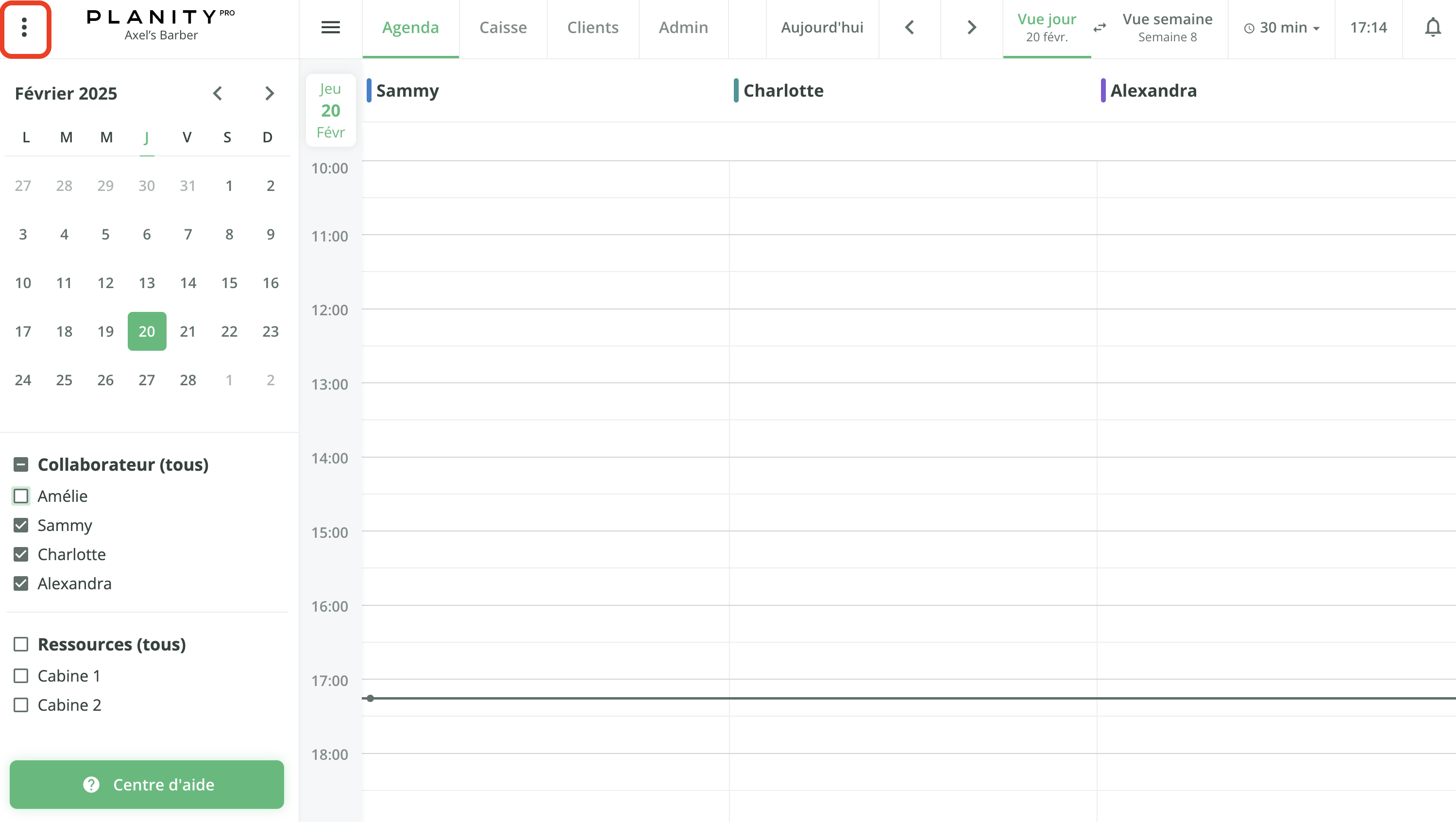 - Pour accéder au menu Planity Pro, cliquez sur les 3 points en haut à gauche de votre écran.