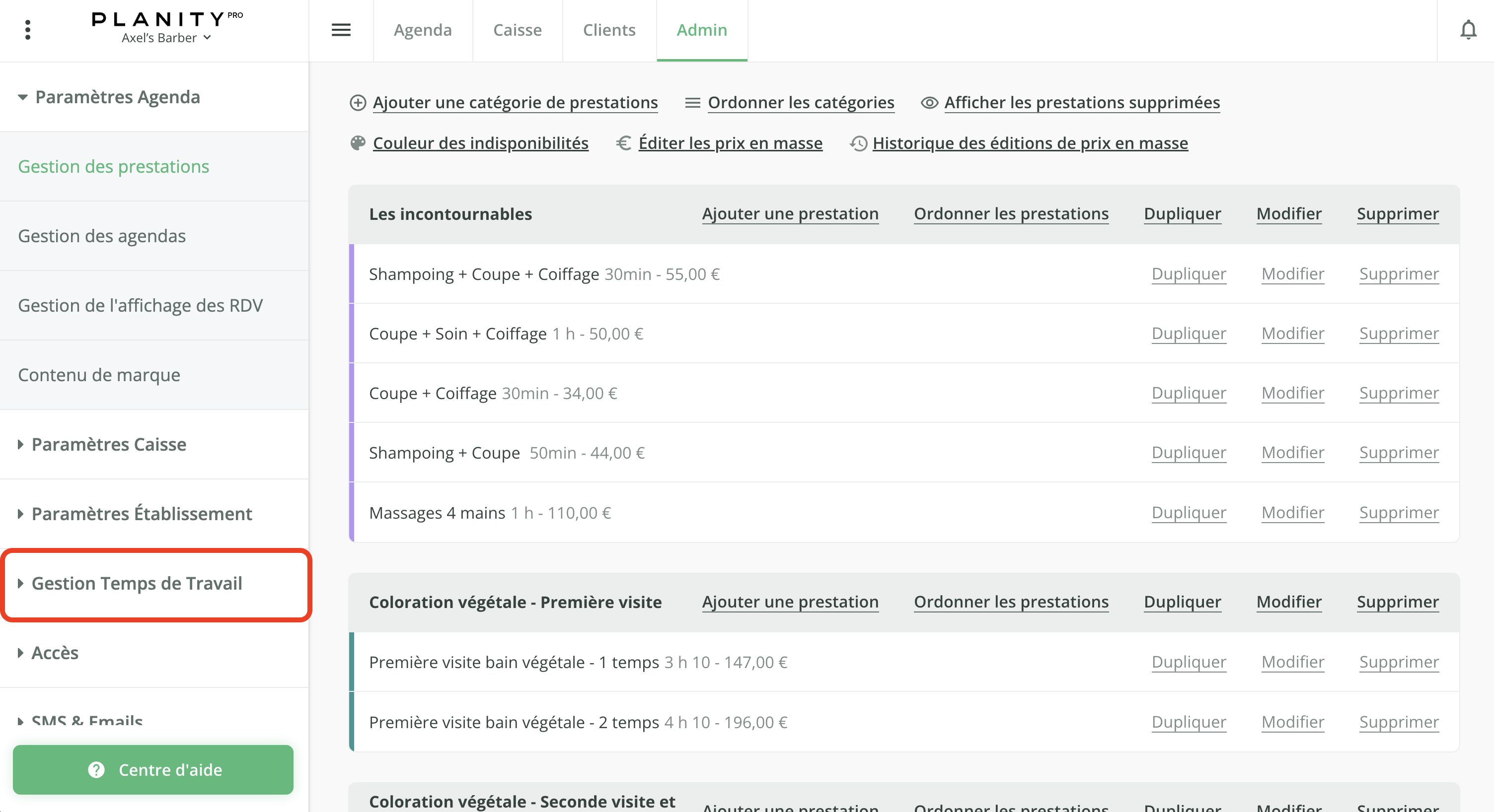 - Cliquez sur le sous menu Gestion Temps de Travail à gauche de votre écran.