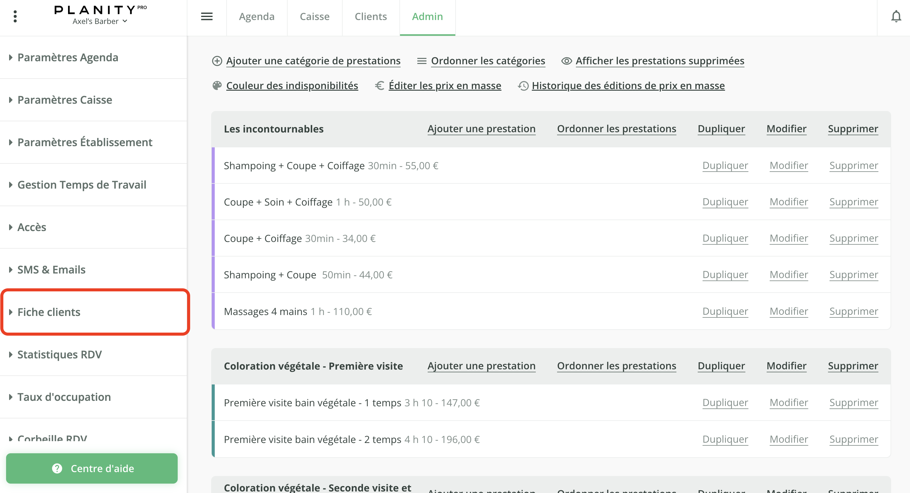 - Cliquez sur le menu Fiche clients.