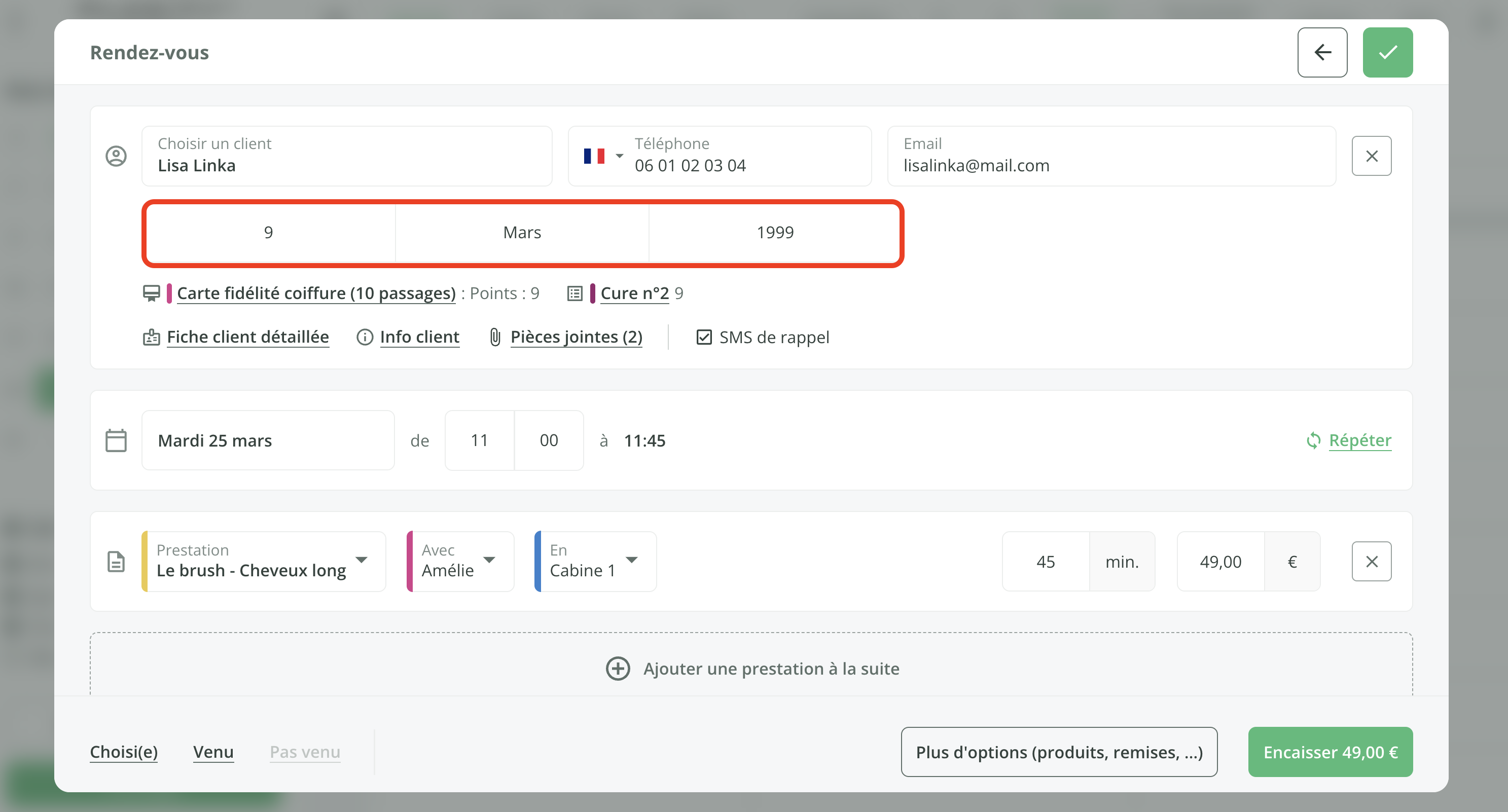 - La date de naissance du client (jour, mois et année ou uniquement jour et mois).