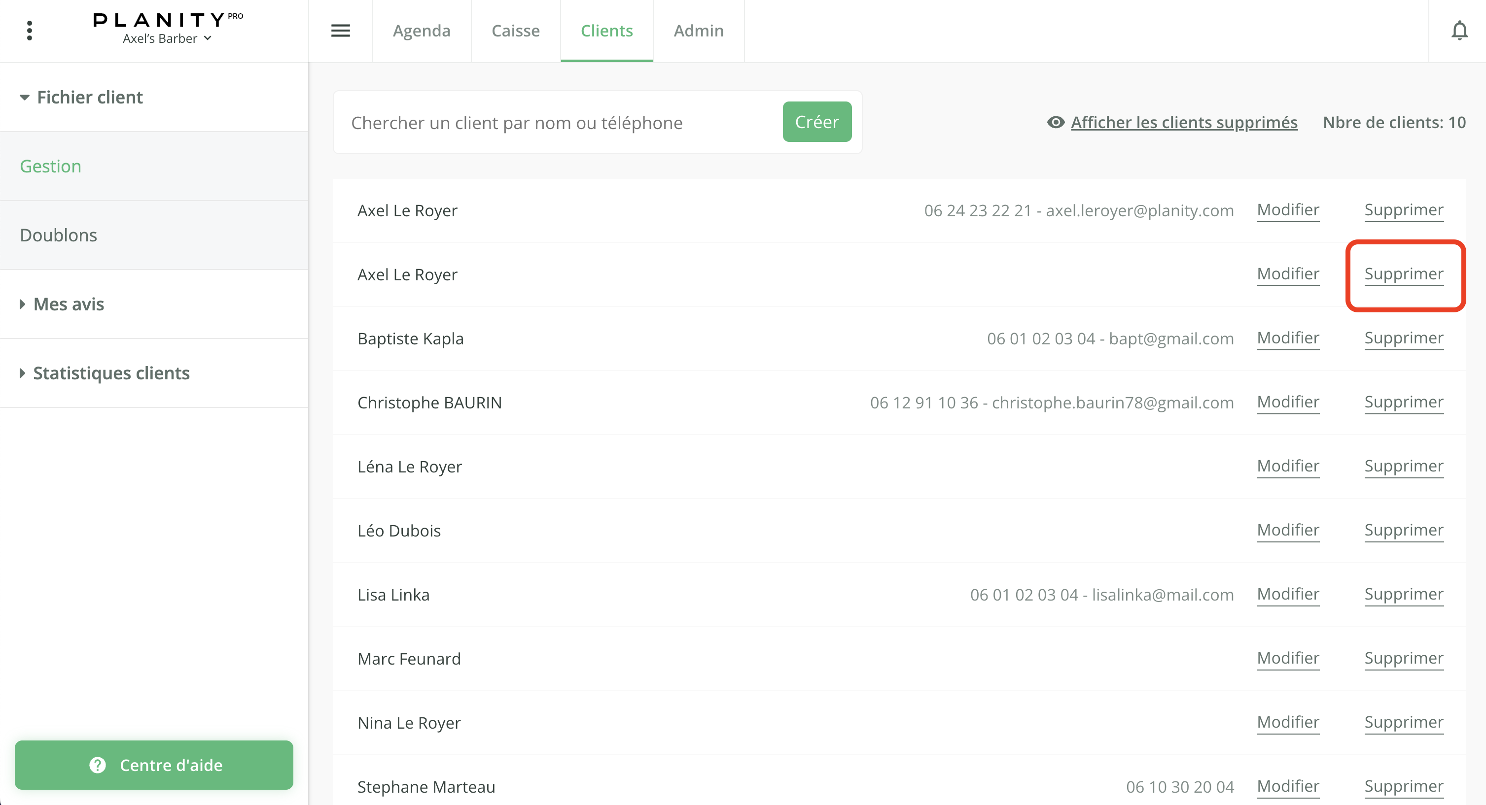 - Pour supprimer un client, cliquez sur l'onglet Clients.