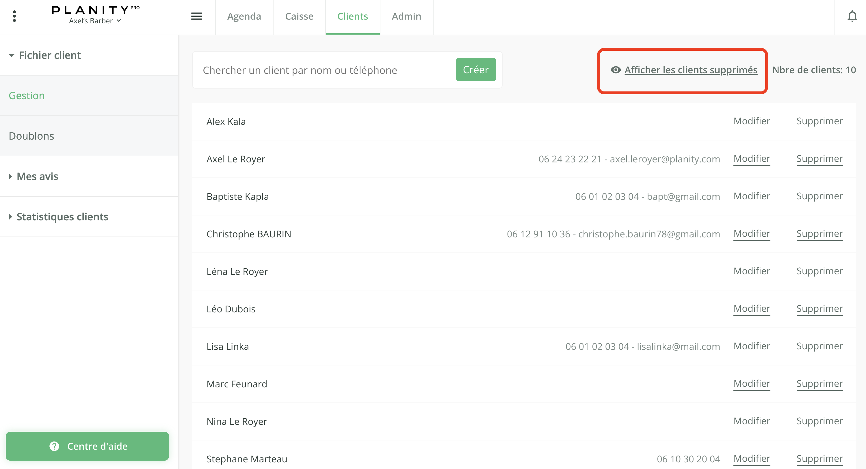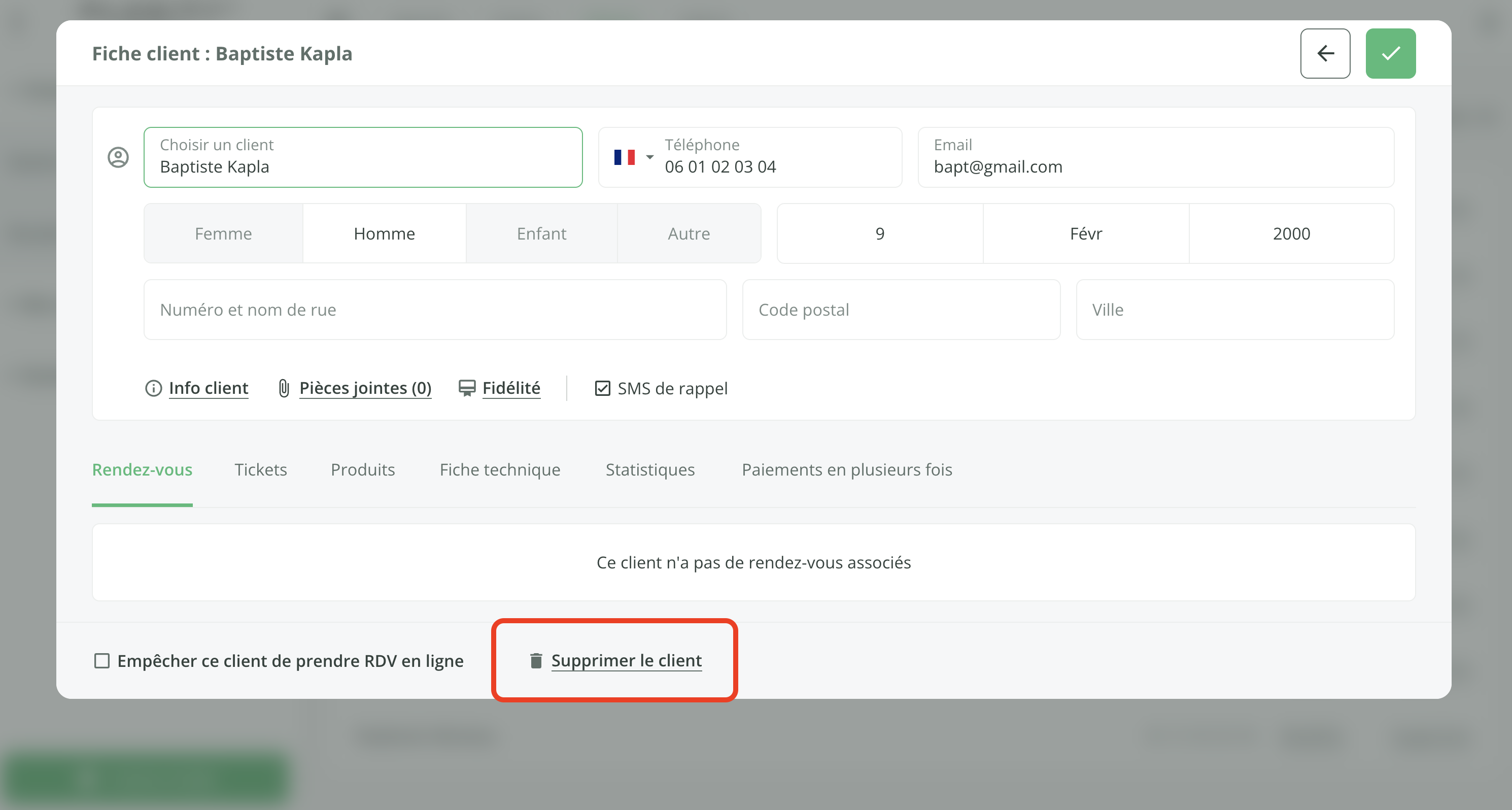 - (Optionnel) Vous pouvez aussi supprimer un client, directement depuis sa fiche client en cliquant sur Supprimer le client, en bas de votre fenêtre.