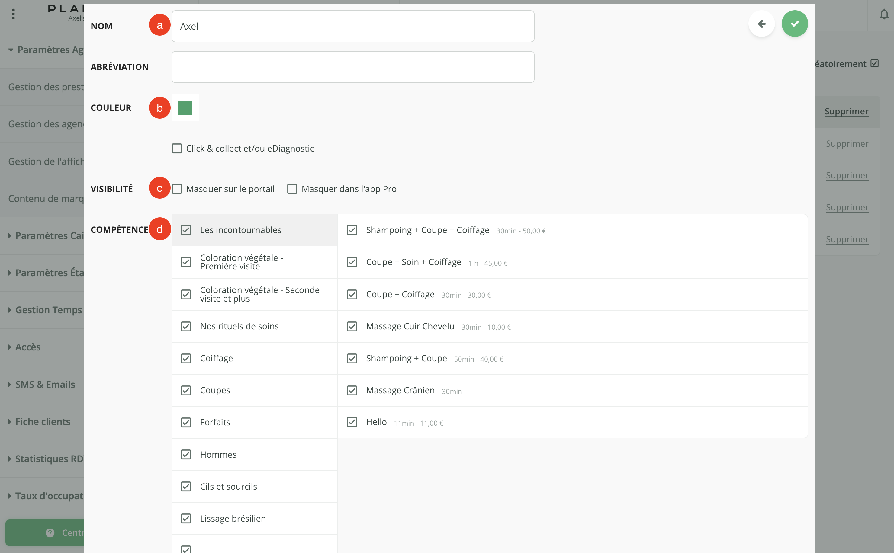 - La visibilité sur le portail (le site où les clients prennent rendez-vous) et sur l'app Pro (l'application que vous utilisez au jour le jour),