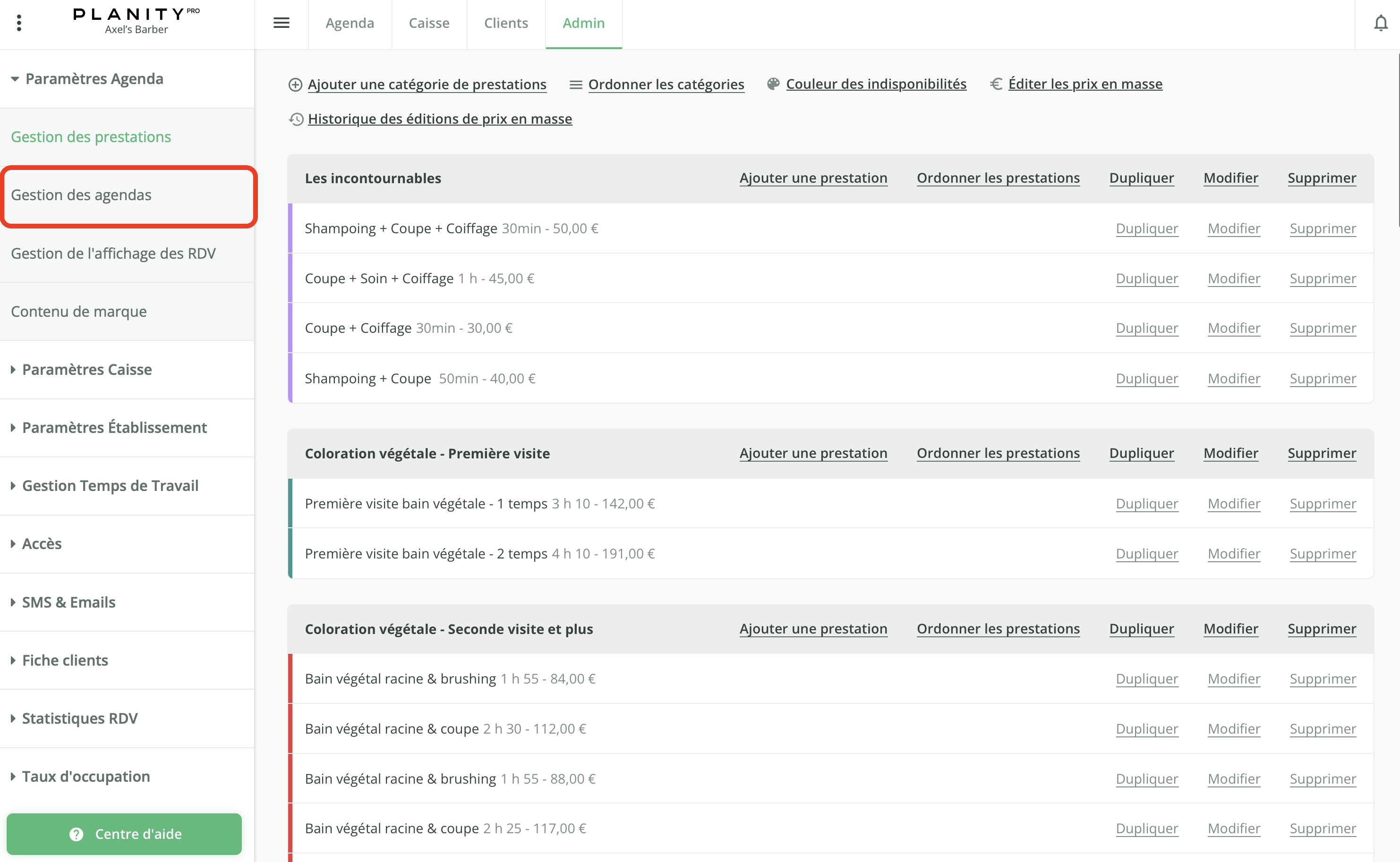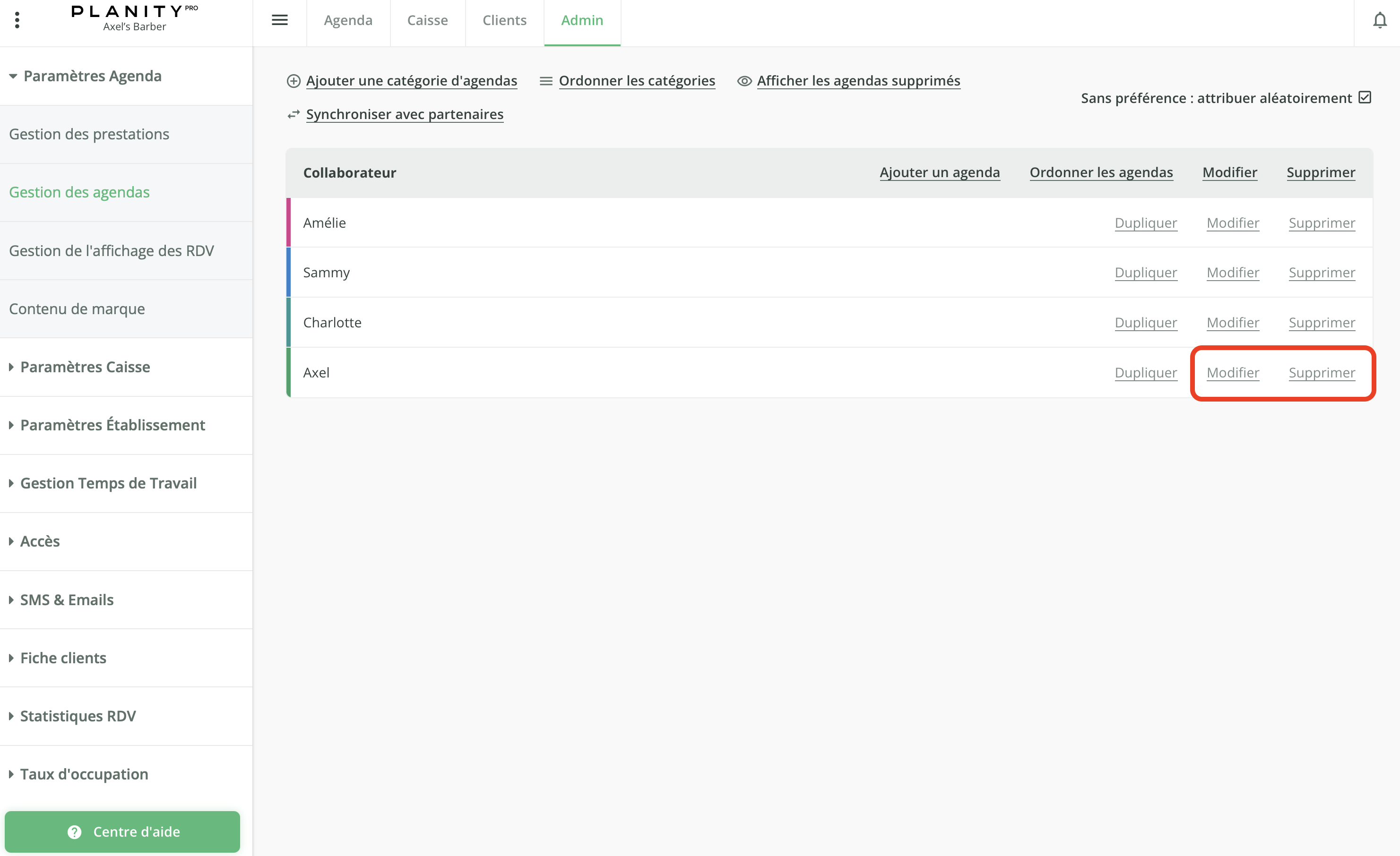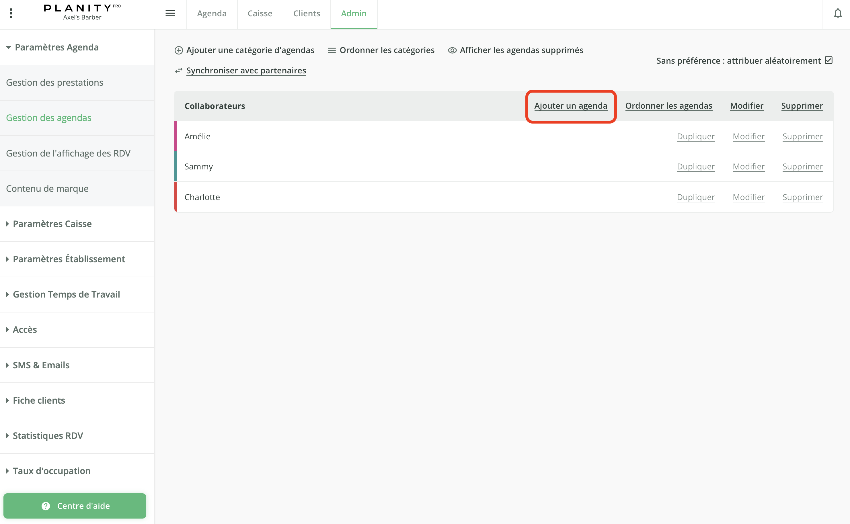 🗓️ Sur Planity, un "agenda" correspond à un collaborateur.